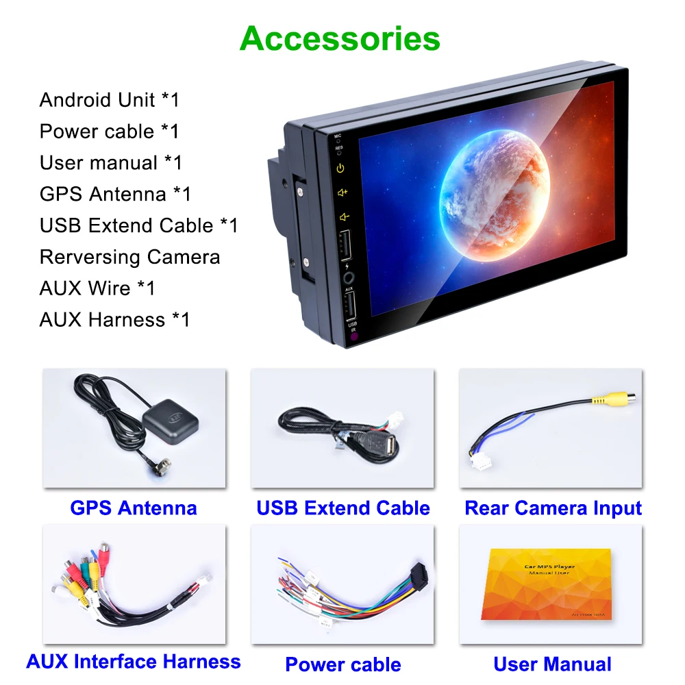Автомагнитола 1Din с сенсорным экраном 7 дюймов, Bluetooth, Wi-FiGP...