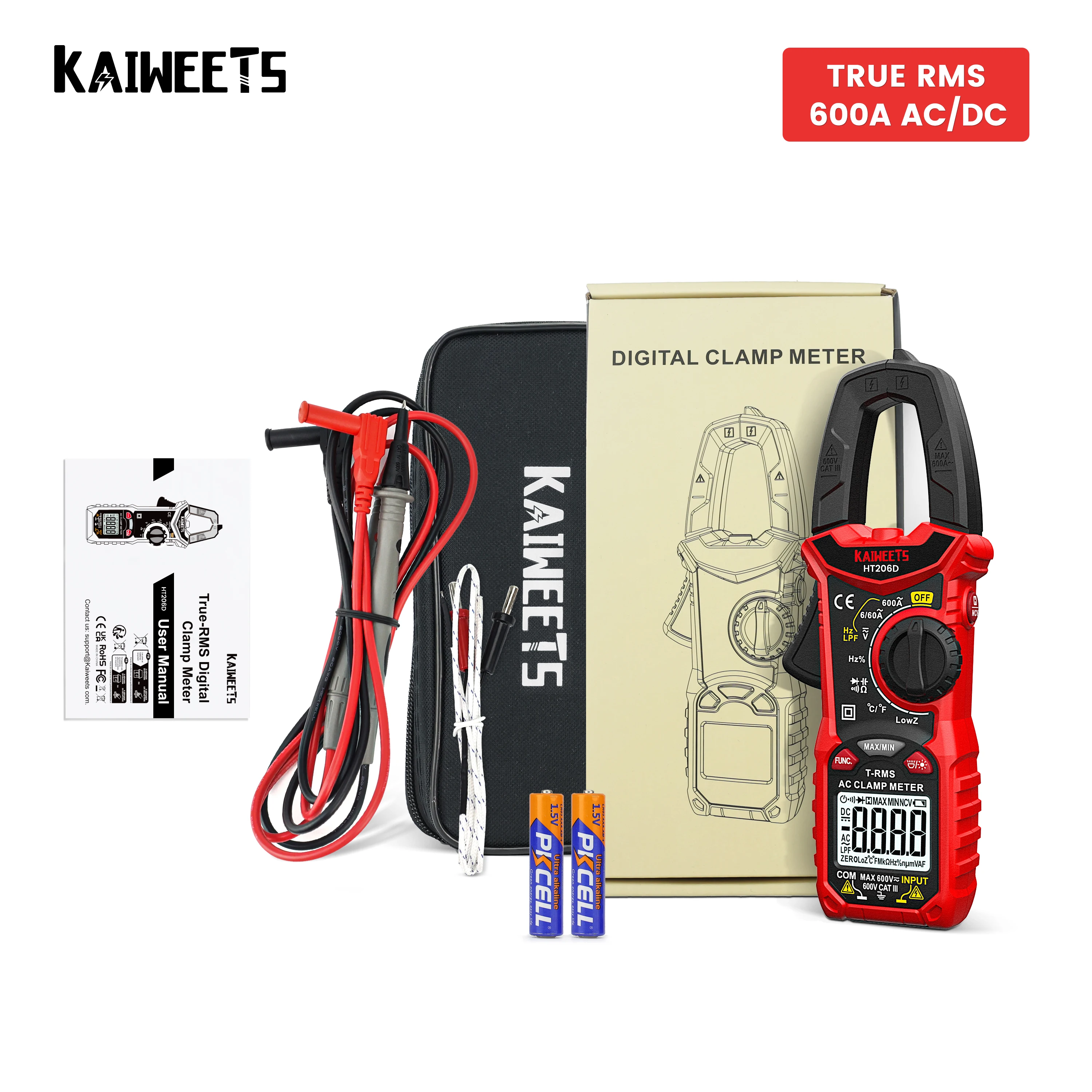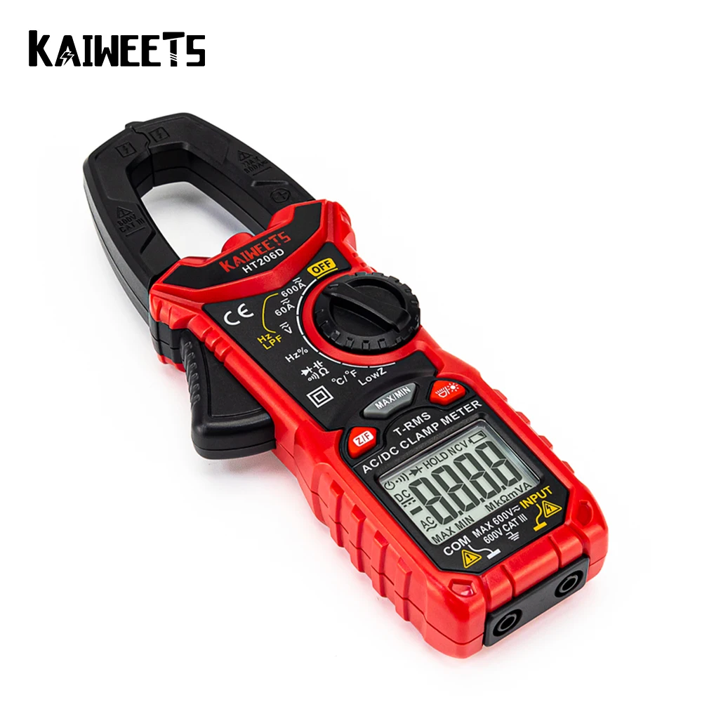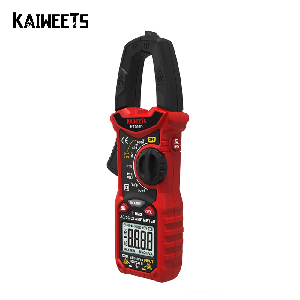 Цифровой мультиметр KAIWEETS HT206D, тестер с функцией True RMS, высокая точность, емкость, Бесконтактный индикатор напряжения, Ом, Гц, переменный и постоянный ток