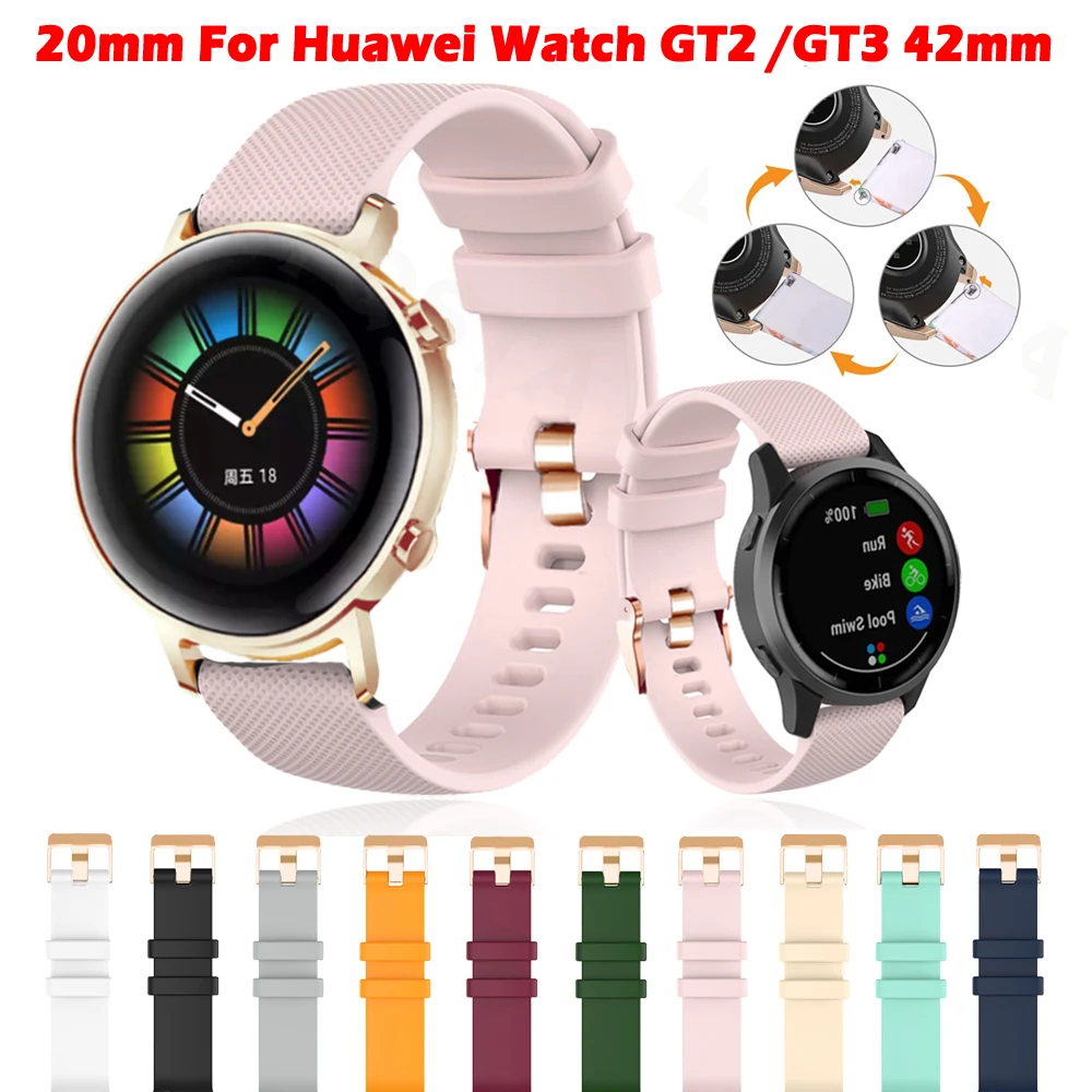 Ремешок с пряжкой из розового золота 20 мм для умных часов Huawei Watch 2 Sport/GT2/GT3 42 мм силиконовый спортивный браслет для GT 3 42 мм Correa