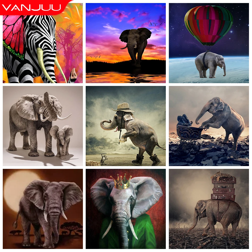 Алмазная живопись 5D, полная вышивка со слоном, бриллиантовая вышив...