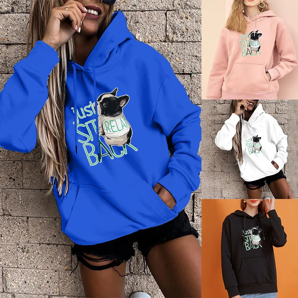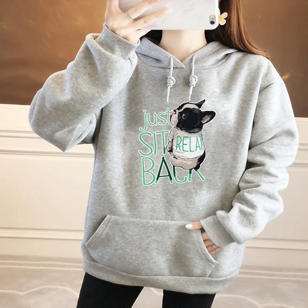Женская толстовка с капюшоном, индивидуальный топ с принтом щенка в стиле Харадзюку, свободная толстовка большого размера с карманами, Женский Повседневный пуловер, одежда, толстовки