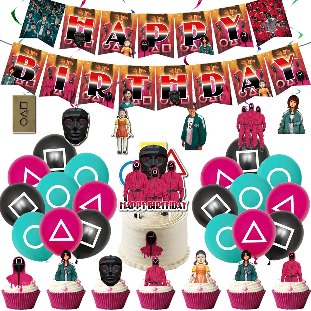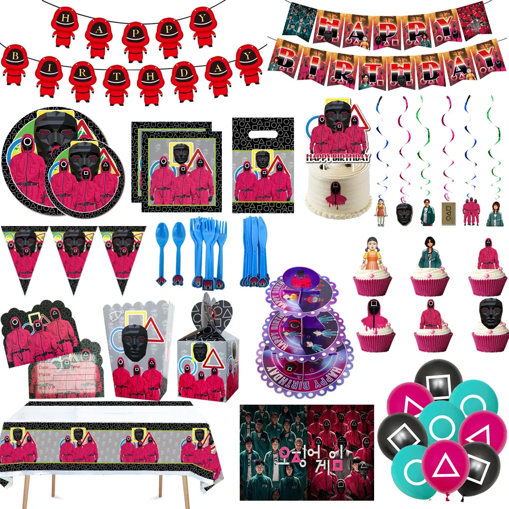 Игра кальмар, украшения для дня рождения, столовая посуда, конфетна...