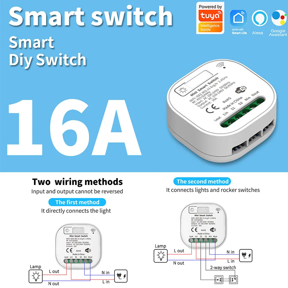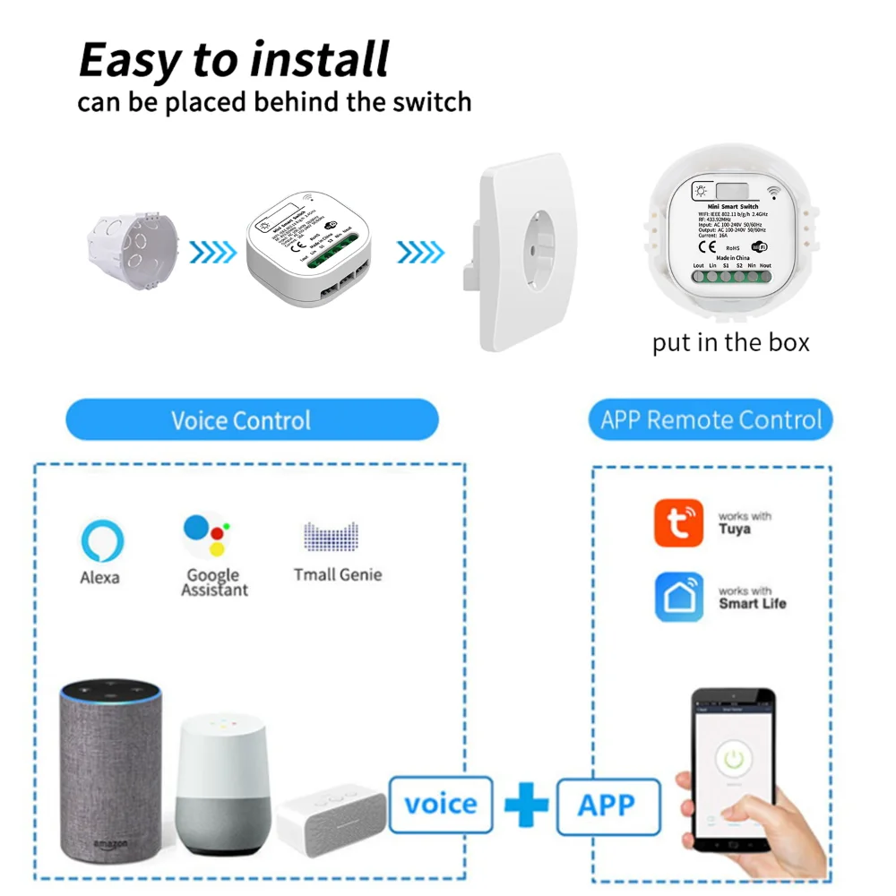Tuya Умный домашний Wifi мини-светильник 220 В 16A с радиочастотным пультом дистанционного управления, настенный выключатель с Alexa Google Home