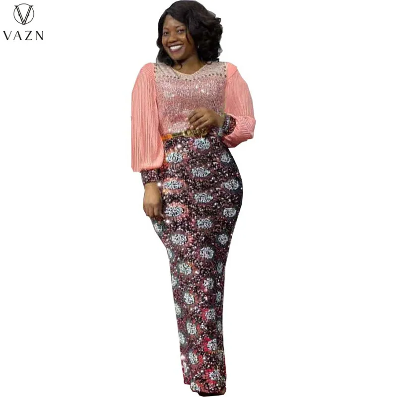 Новинка 2022 г., длинное платье VAZN в стиле Хай-стрит, Роскошное дизайнерское платье с длинным рукавом и круглым вырезом, платье до пола с принтом