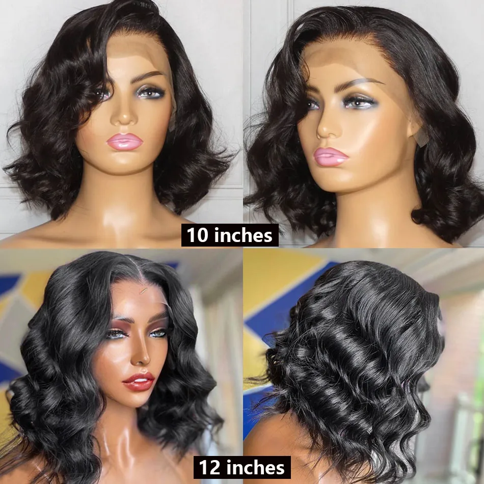 Свободные Волнистые Короткие парик Боб 13x4 13x 6 кружевные передние человеческие волосы бразильские 4x4 закрытие парик предварительно выщипанные кружевные передние al парики Remy 150%