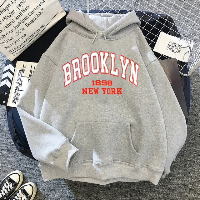 Новые женские бархатные толстовки с капюшоном и надписью Brooklyn, ...