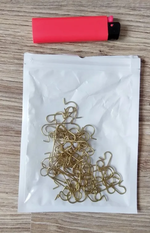 Пришли за три недели в почтамат. Хорошее качество. Не пересчитывала Круглые игрушки будут висеть на ёлке со всех сторон кругленько, а вот бантик вывернут боком. Исправляется легко, надо крючок вывернуть не в одной плоскости, как он есть, а концы под углом ~ 90° , легко поворачивается пальцами, инструментов для этого не надо. См. фото. Брала на пробу. Понравились, поэтому закажу еще, к следующему Новому Году.