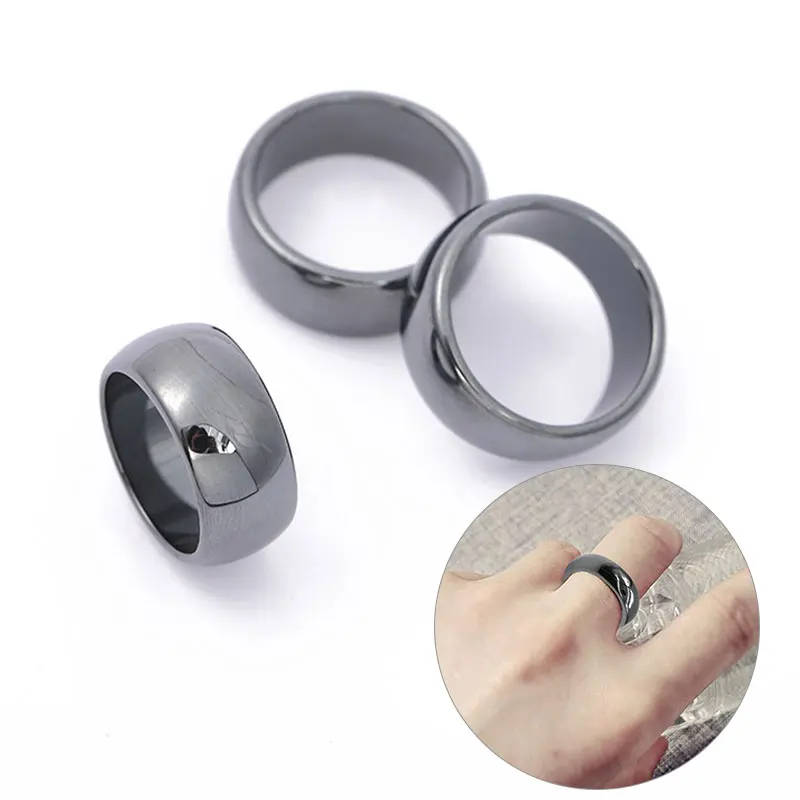 1 шт., женские и мужские гематитовые кольца, не магнитные ювелирные изделия, гладкие круглые плоские очаровательные соединительные кольца на палец, подарок для друга