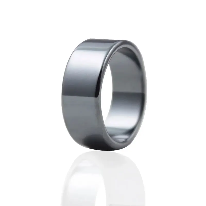 Простые гладкие гематитовые кольца, изготовленные из натурального к...