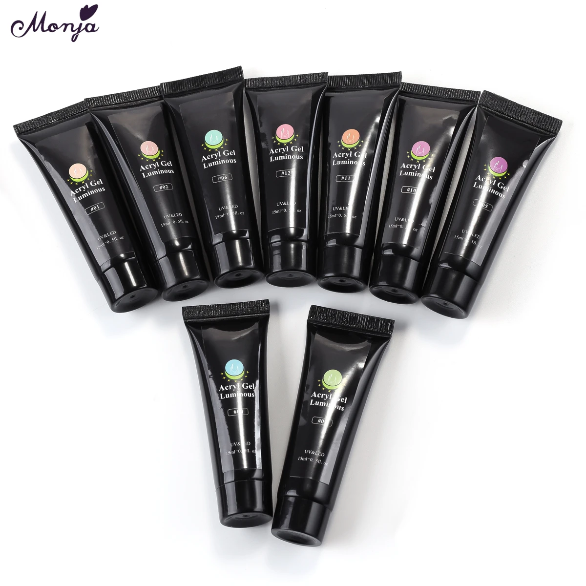 Monja 9 видов стилей 15 мл акриловый светящийся УФ-гель для дизайна ногтей наращивание ногтей быстрое строительство Сделай Сам нанесение покрытия гель для ногтей Маникюрный Инструмент