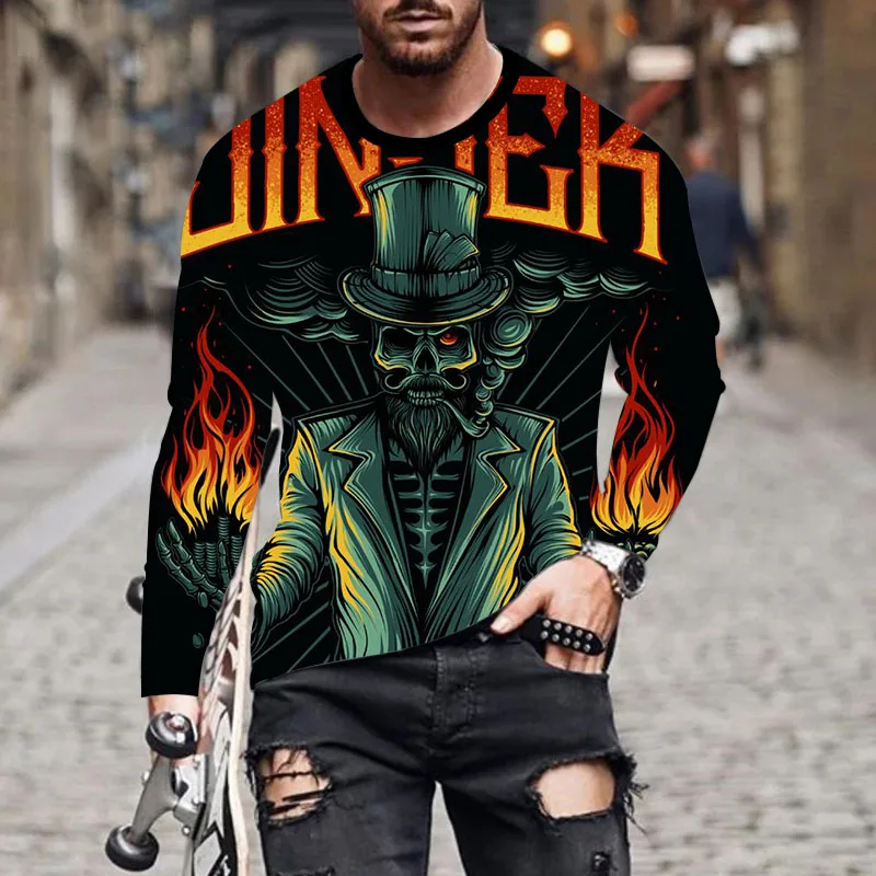 Европейская и американская популярная мужская Спортивная футболка для отдыха с 3D Цифровым принтом уличная трендовая футболка с 3D принтом и длинным рукавом