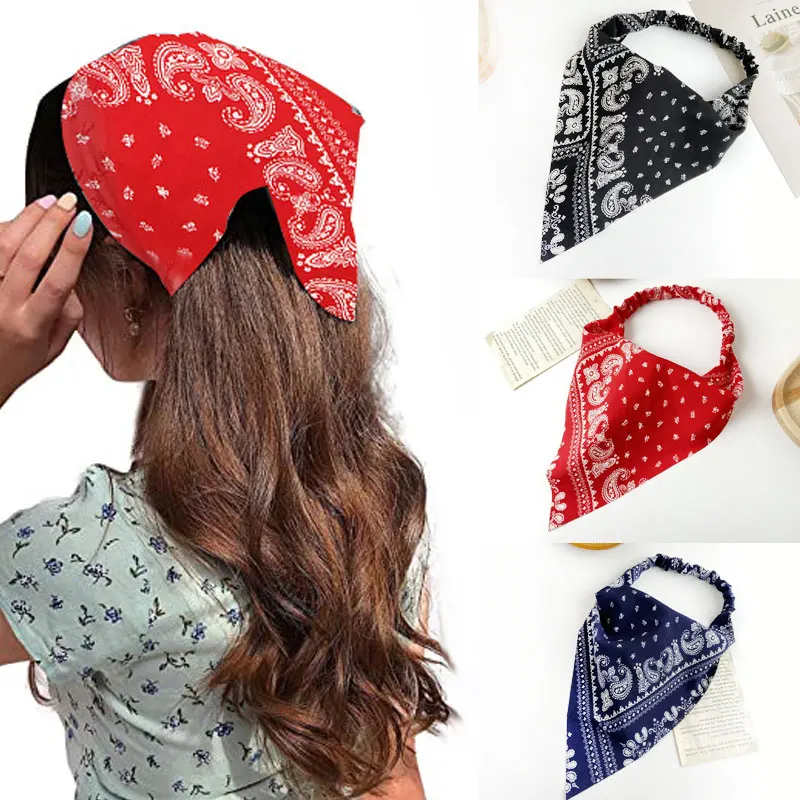 Повязка на голову женская, треугольная, винтажная, с принтом