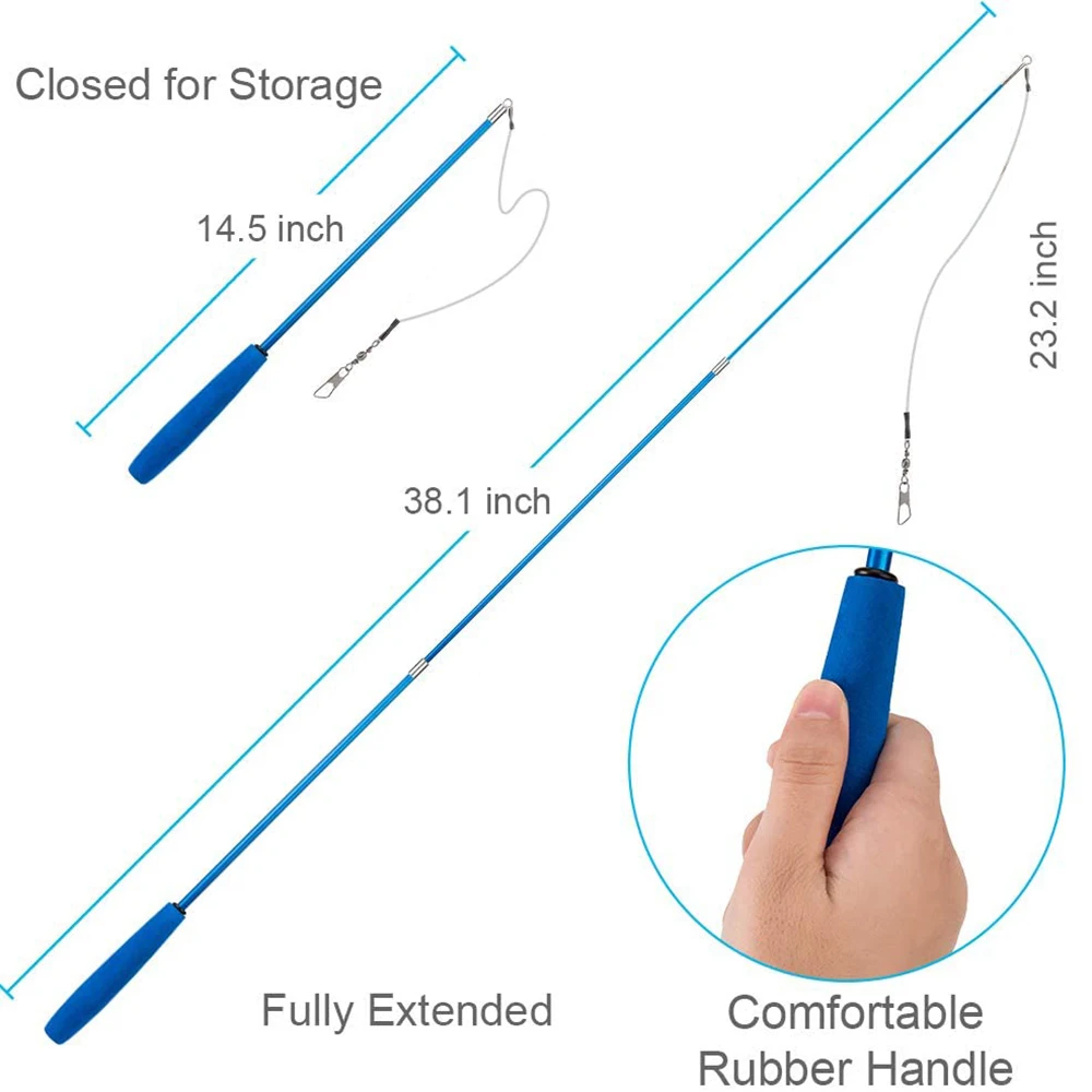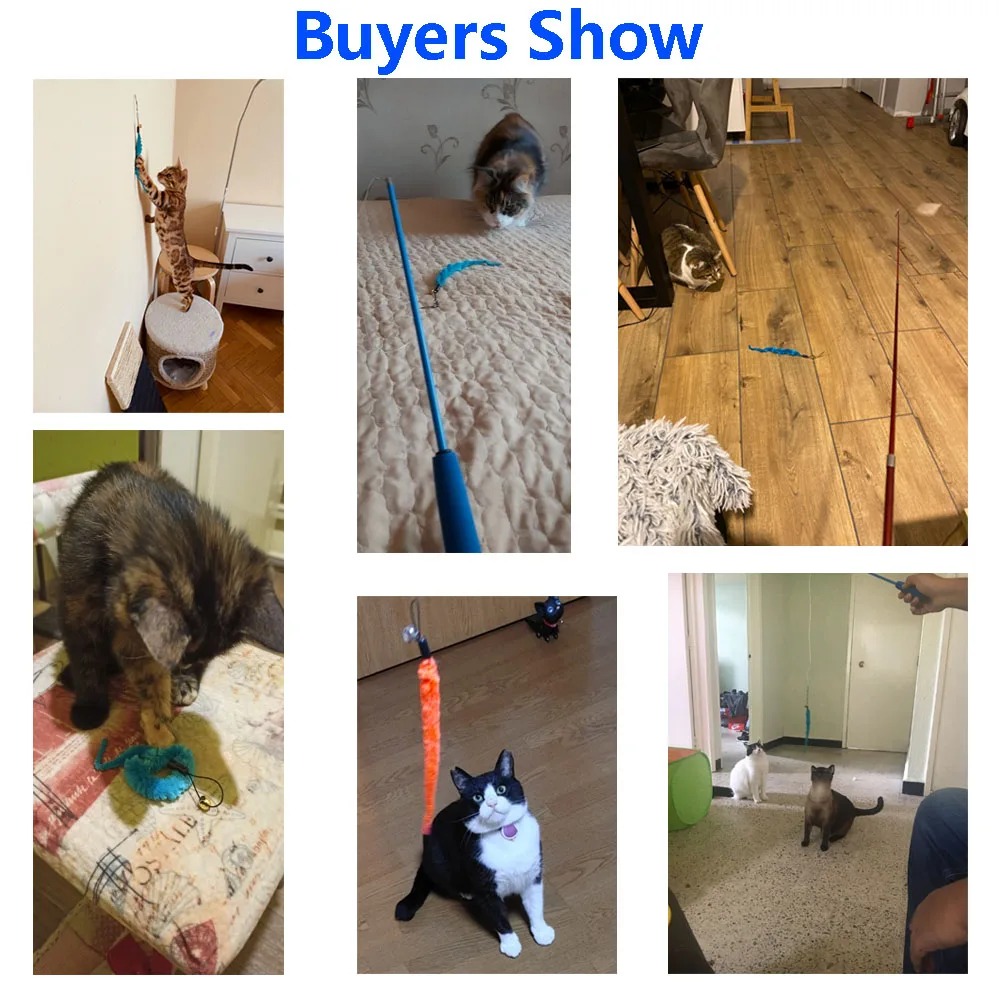 Выдвижная игрушечная палочка для кошек поможет вашим кошкам переворачивать, прыгать, набрасываться, гоняться за этими игрушками. Это был бы хороший способ сохранить его здоровым и веселым.