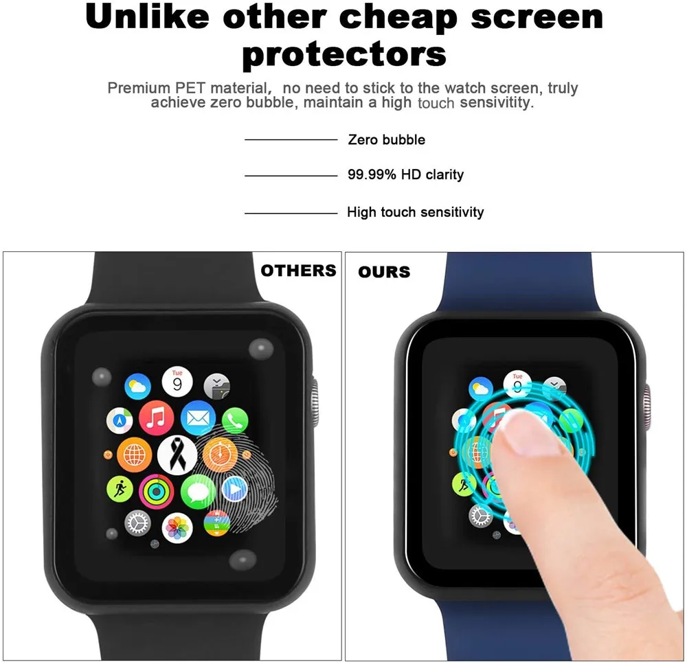 [Воздушный пузырь бесплатно]: оснастка, премиум ПЭТ-материал с новой технологией, защита экрана действительно не пропускает воздух, никогда не беспокойтесь о пузырьках воздуха, вызванных сложной или неправильной установкой, которая влияет на эстетику и чувствительность к прикосновениям. Пожалуйста, обратите внимание: для занятий спортом (плавания) чехол может привести к тому, что влага попадает в ловушку между крышкой и экраном часов. Если есть туман, пожалуйста, протрите его тканью.