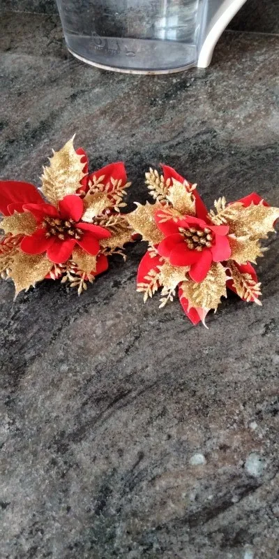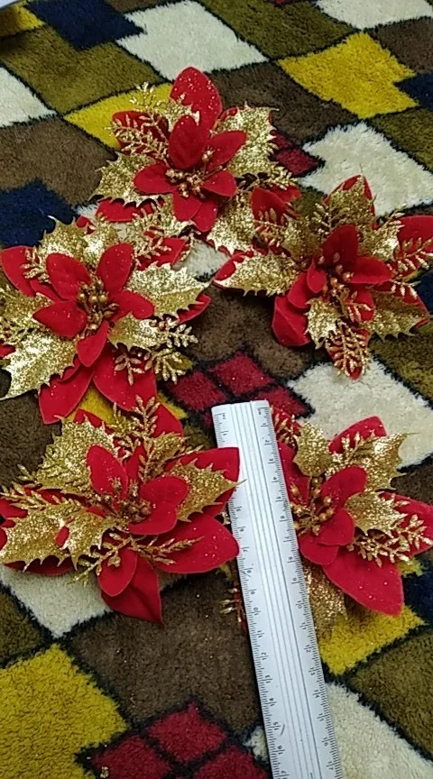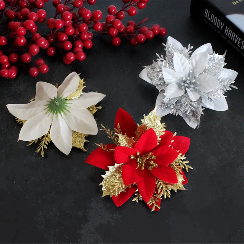 5 шт. 13 см блестящие Искусственные Рождественские цветы, украшения для рождественской елки, искусственные украшения для дома, новогодние подарки