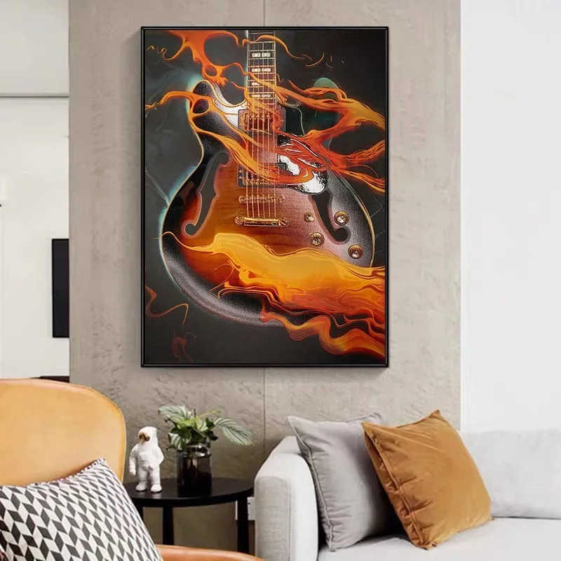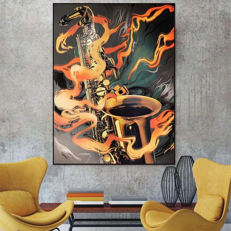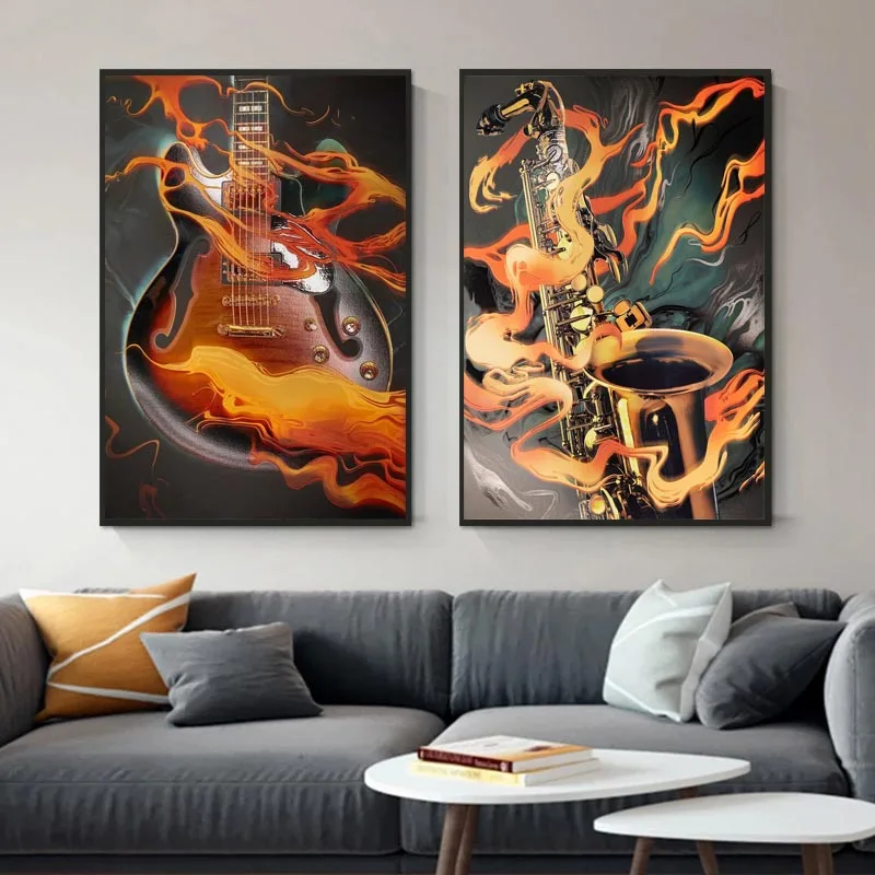 Пламенный саксофон, Классический музыкальный инструмент, плакат, Современная гостиная, украшение для дома, без рамки