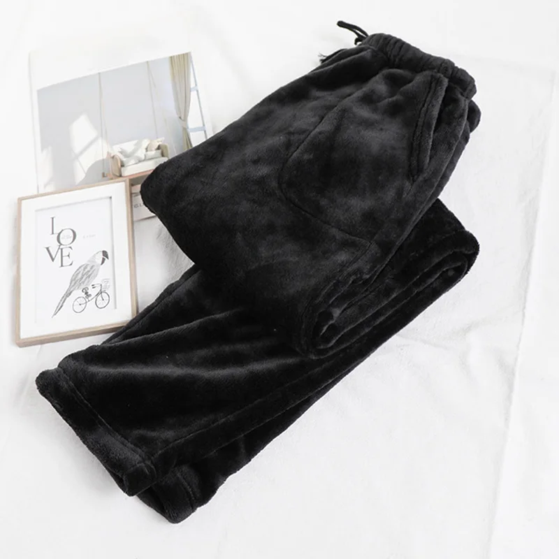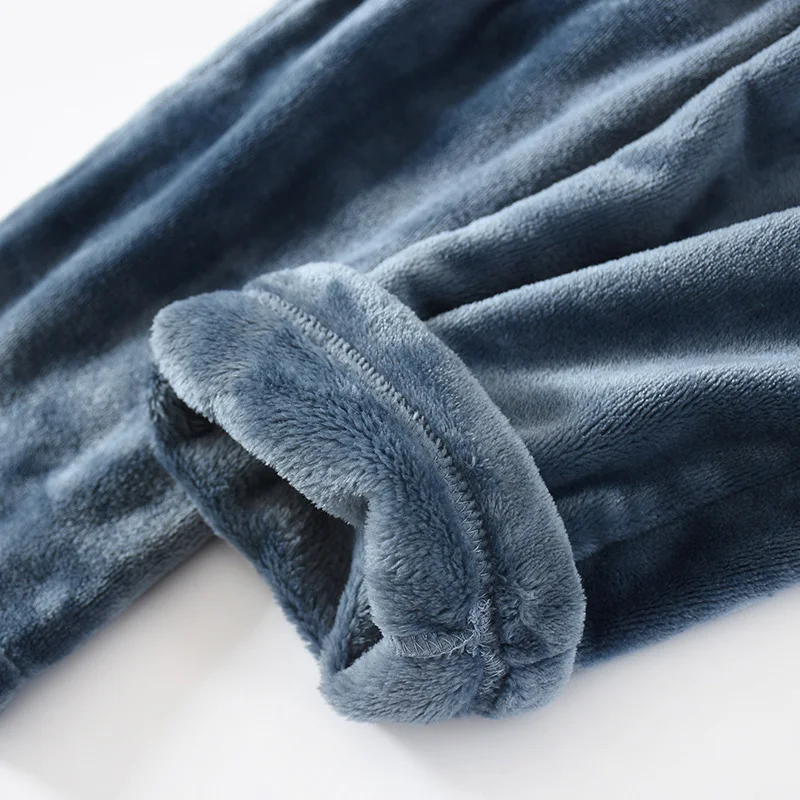 Удобные зимние толстые мужские Фланелевые Пижамные брюки с высокой талией Свободные повседневные Прямые теплые домашние брюки большого размера из флиса