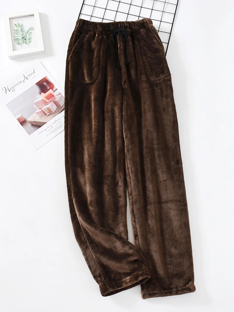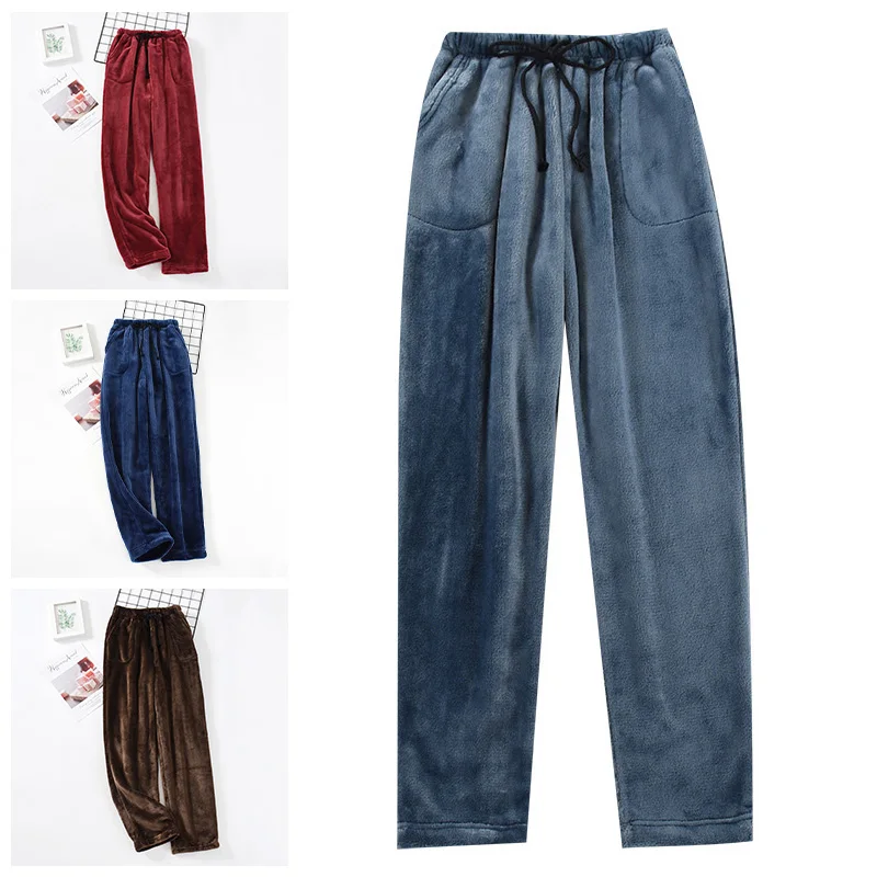 Количество: 1 шт.; Мужские зимние плотные фланелевые пижамные штаны; Брюки для сна с высокой талией