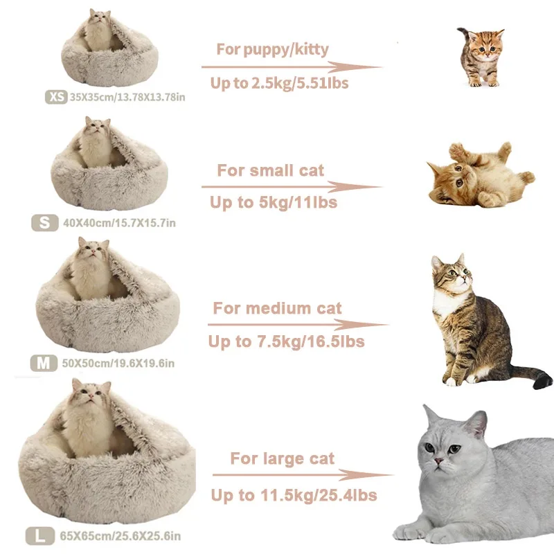 Популярная плюшевая кровать для кошек, теплая кровать для домашних питомцев, мягкая круглая Лежанка для котят с крышкой, пещера для щенков, Конура, подушка, Аксессуары для кошек