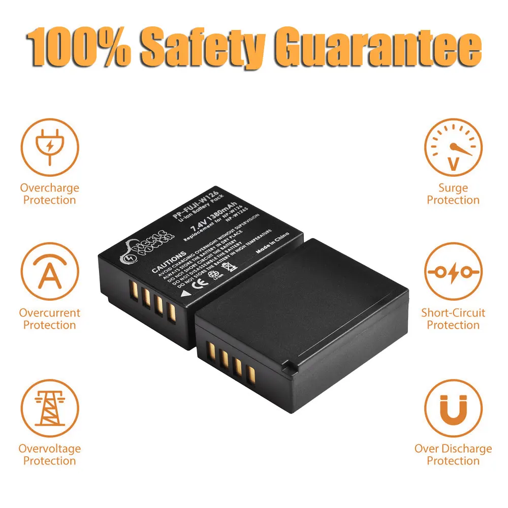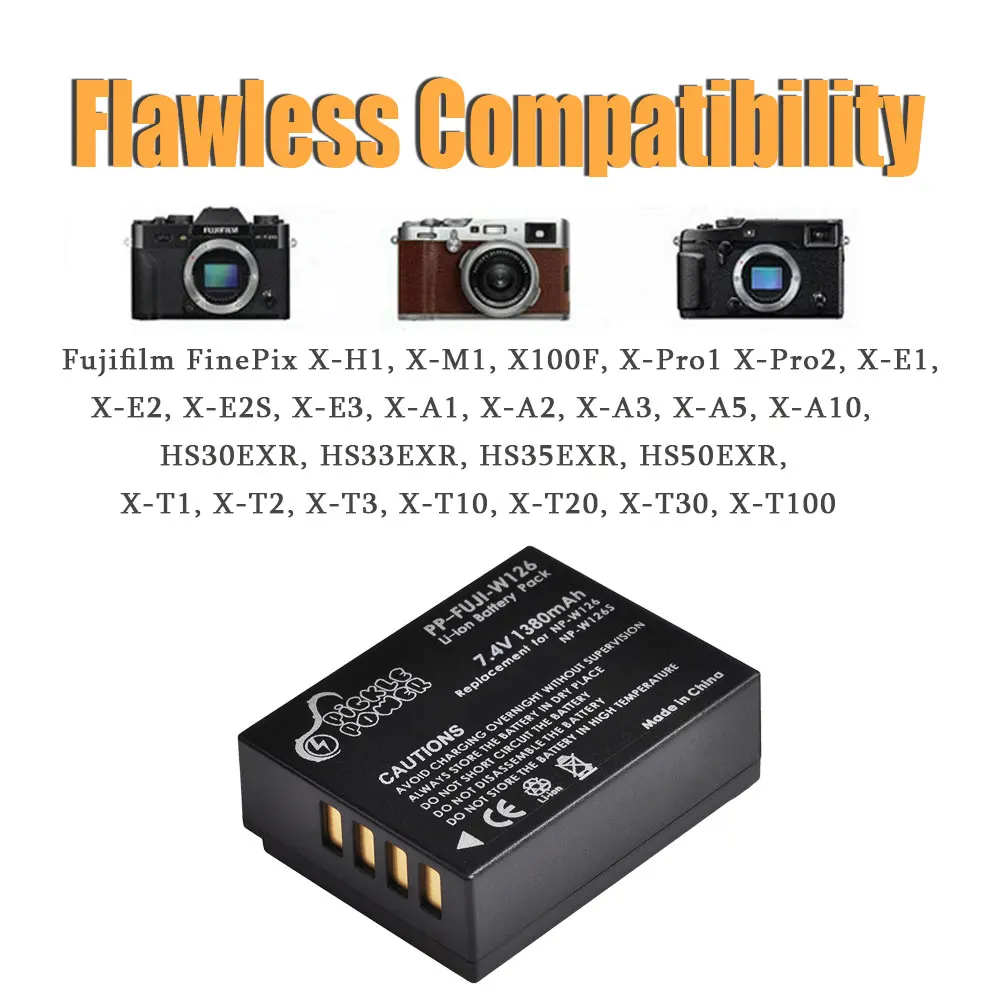 Аккумулятор NP-W126S NP-W126 емкостью 1380 мАч для Fujifilm X-T100, X-T200, X100F, X100V, X-S10, X-A5, X-A10, X-E4, X-Pro2, X-Pro3, X-T1, X-T2