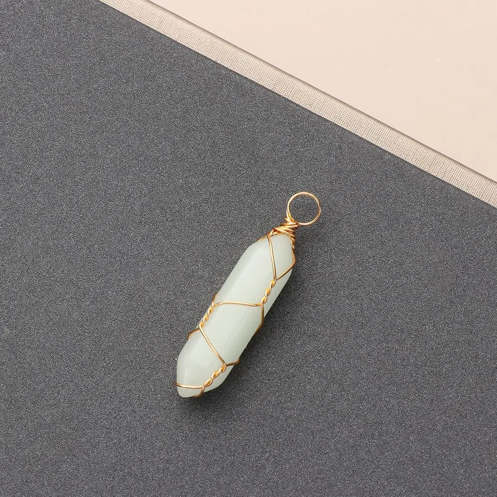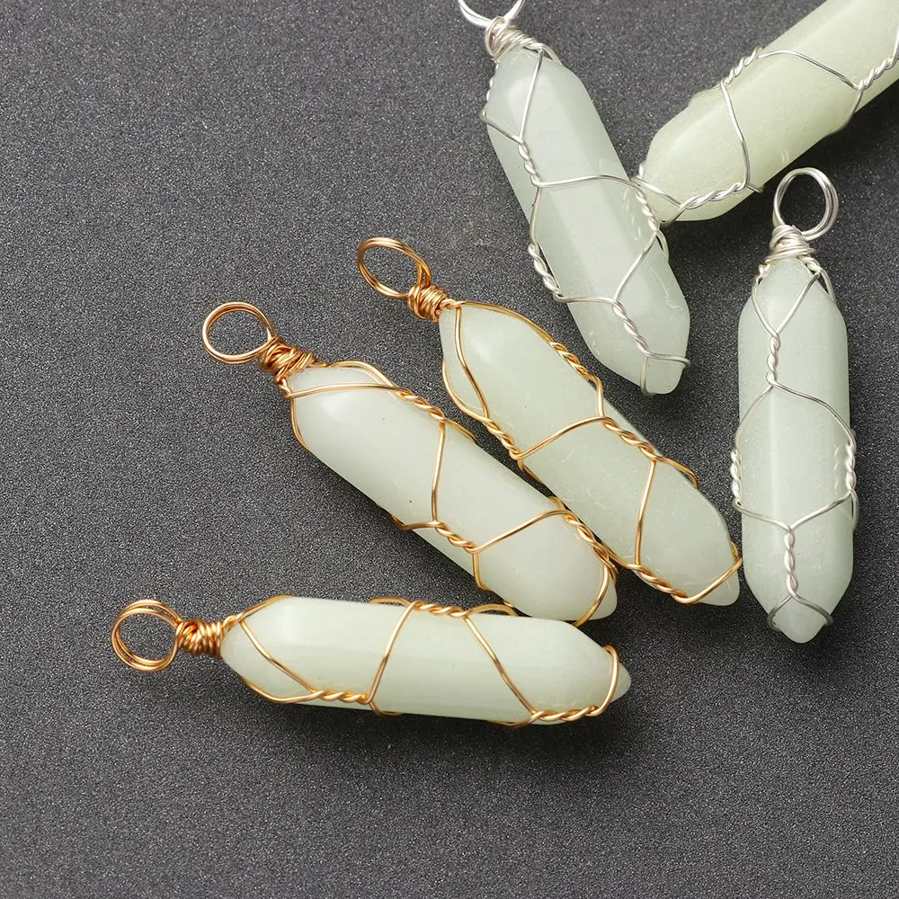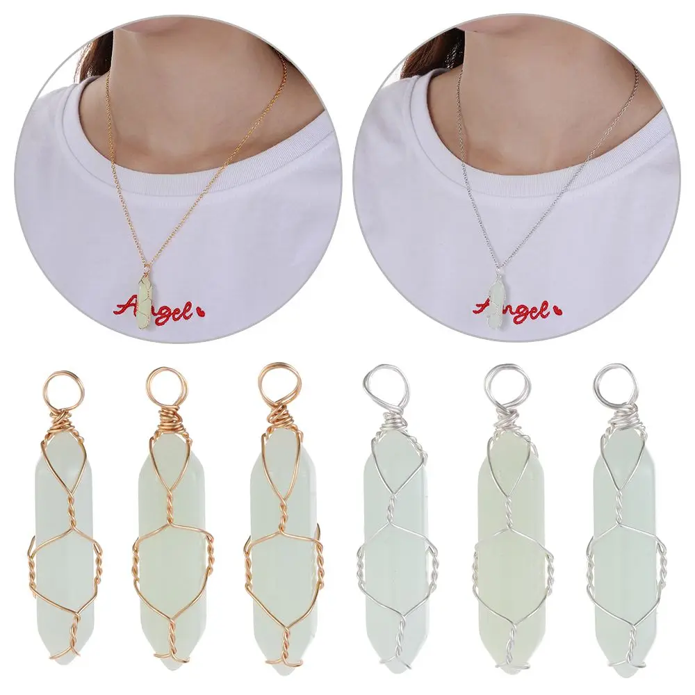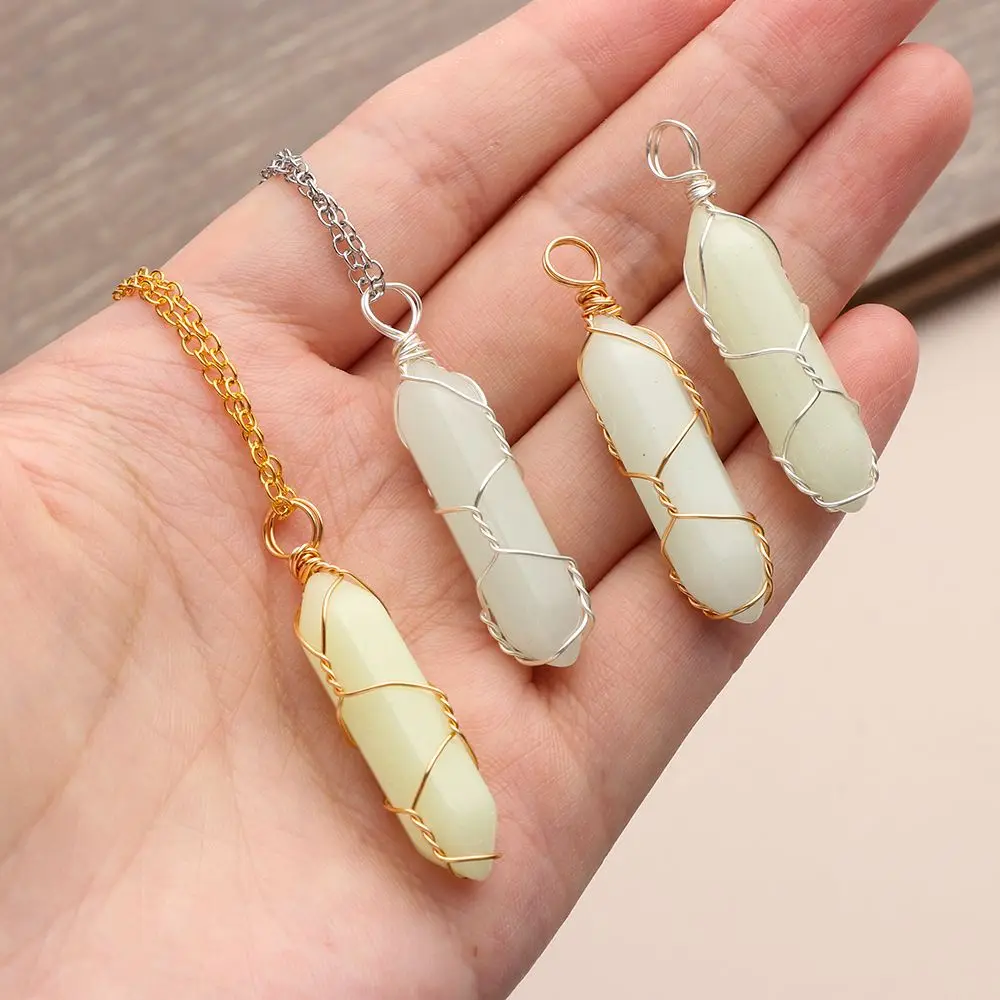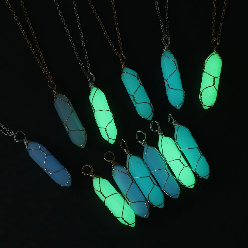 Подарок для женщин и мужчин, ювелирное изделие из натурального камня, подвеска из проволочного камня, шестигранное цилиндрическое хрустальное ожерелье, светящееся