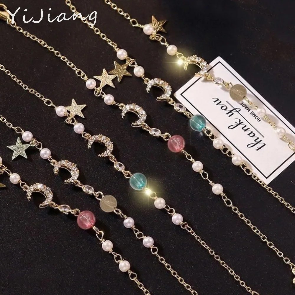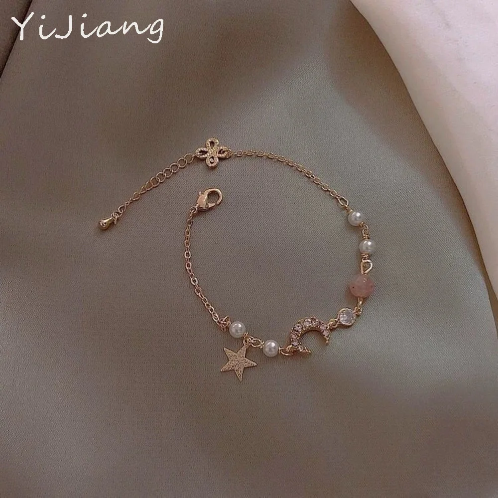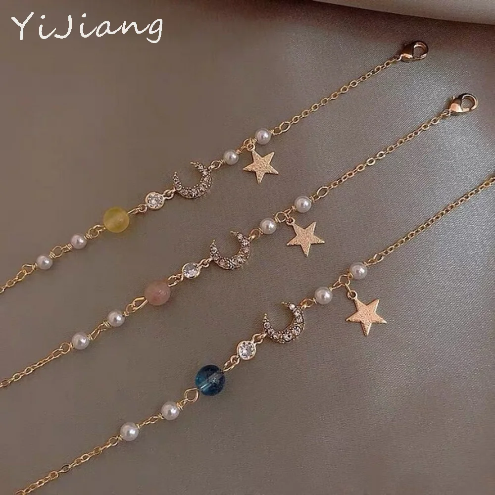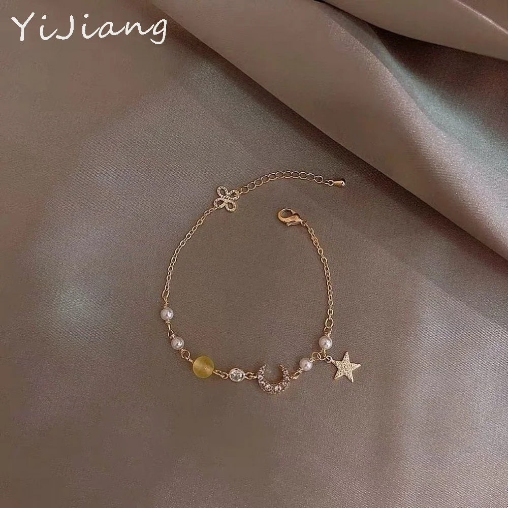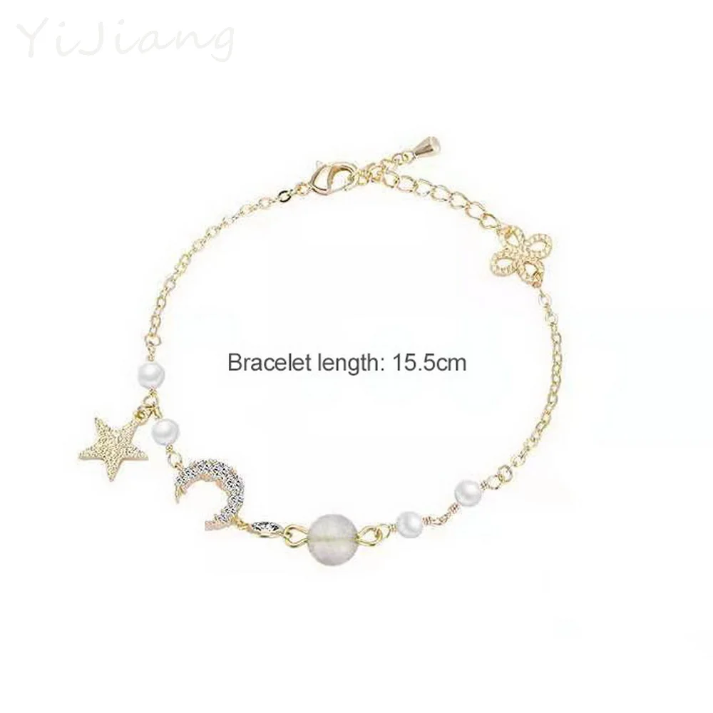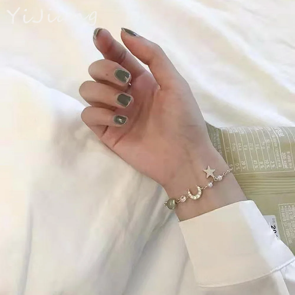 Браслеты женские серебряные со звездой и луной, ювелирные украшения с имитацией алмазов и бусинами из агата, купите 1 и получите 2