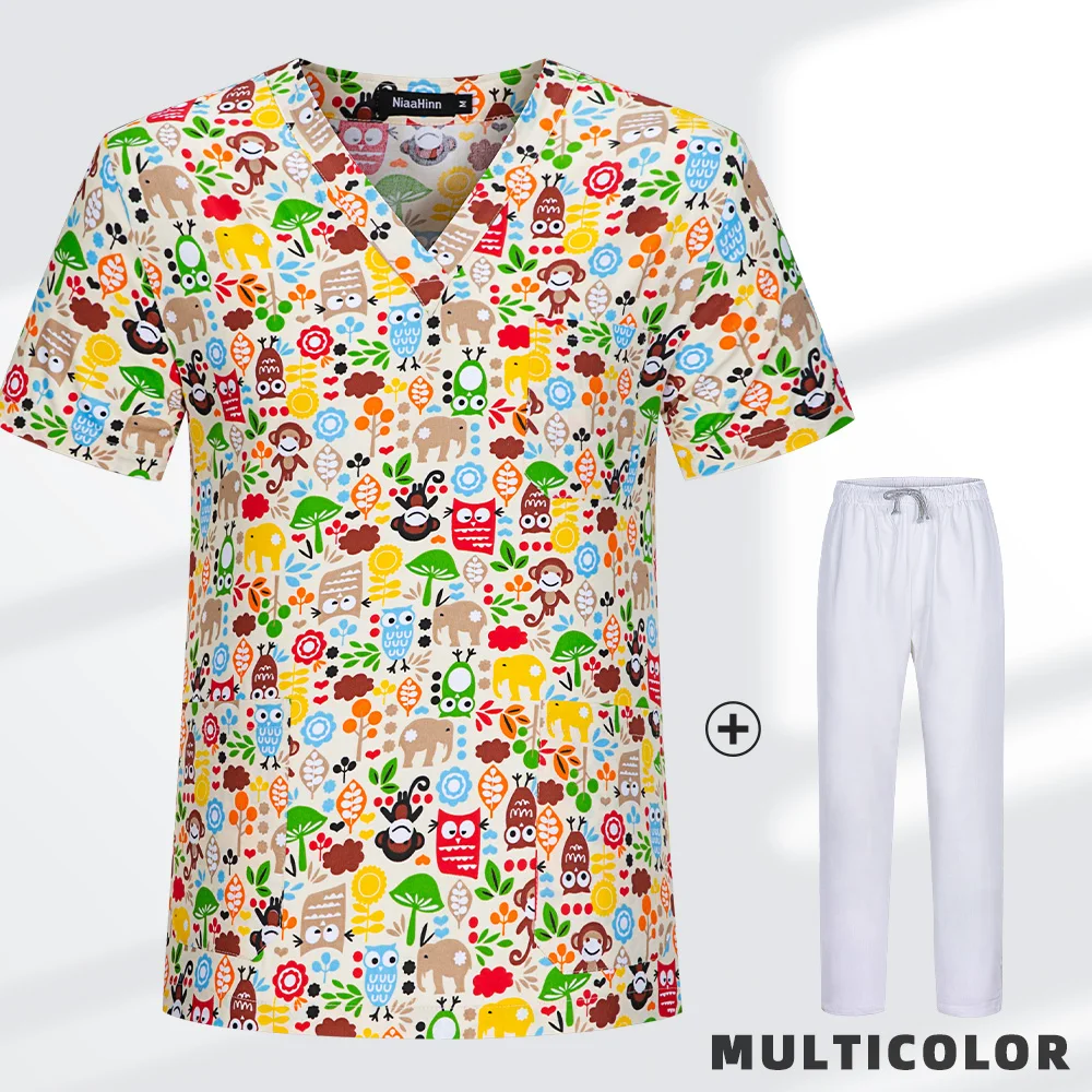 Униформа Niaahinn для медсестер, одежда из хлопка с цветочным принт...