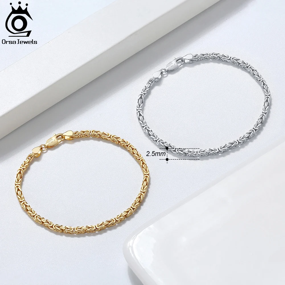ORSA JEWELS, ручная работа, итальянская, 2,5 мм, плоская Византийская цепочка, браслет, 18 К, золото, более 925 пробы, серебро, Женская цепочка для подростков, SB122