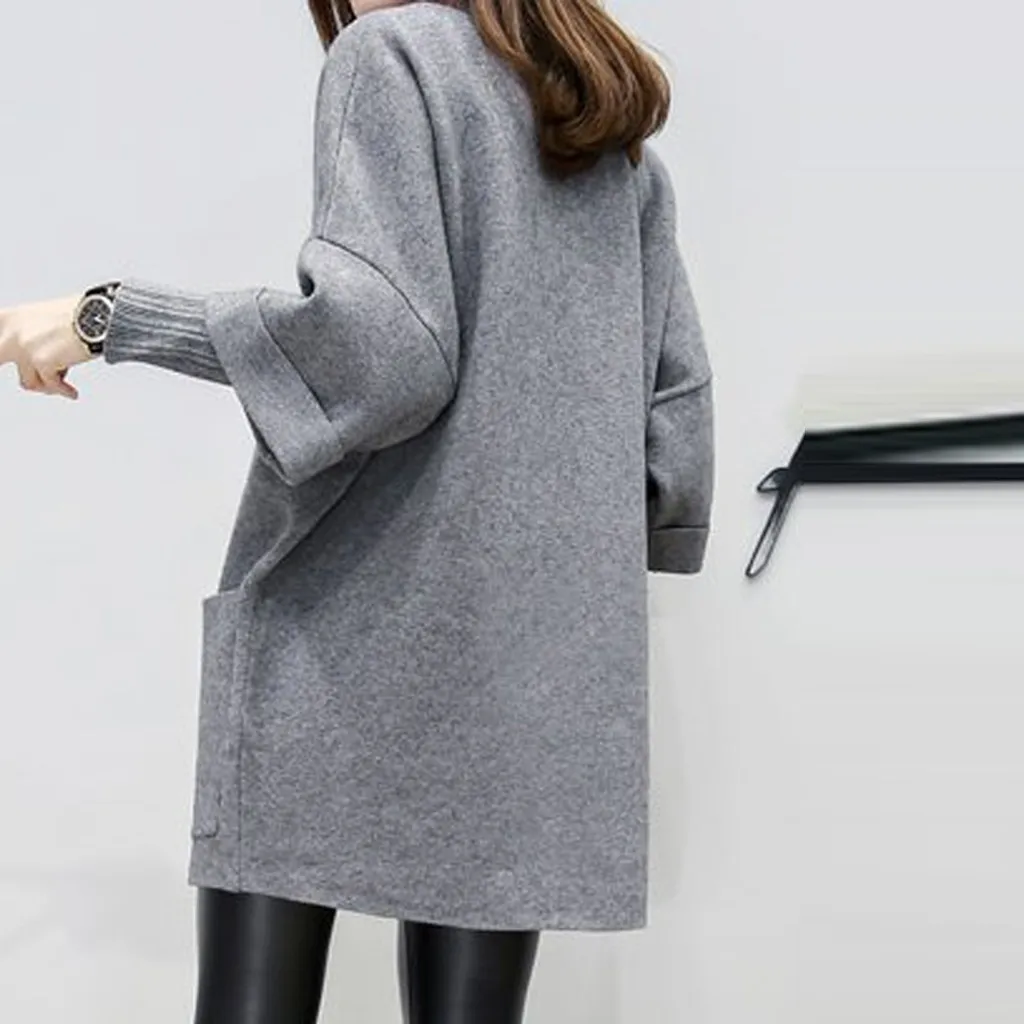 Женское платье, корейский тренд, высококачественный кашемировый свитер с круглым вырезом, Женский Дикий свободный длинный вязаный джемпер с длинными рукавами, шерстяное платье