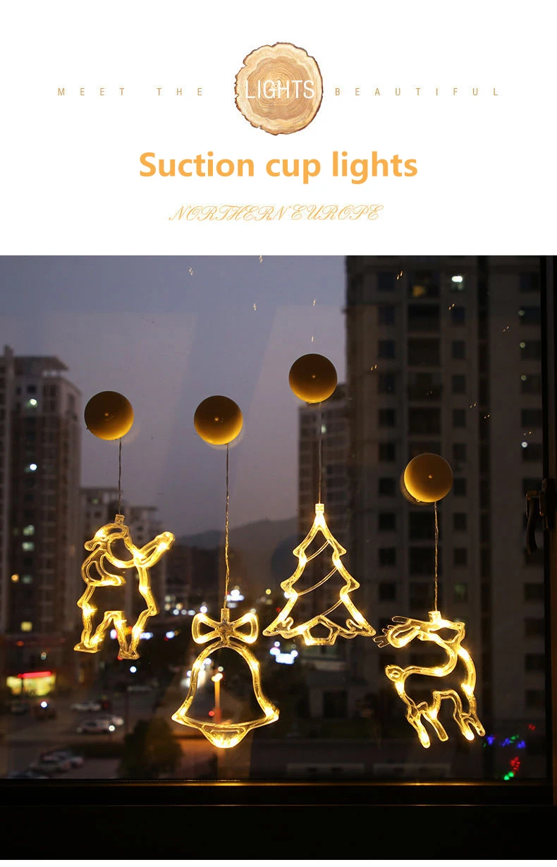 Рождественская гирлянда со светодиодной подсветкой, лампы с присоск...