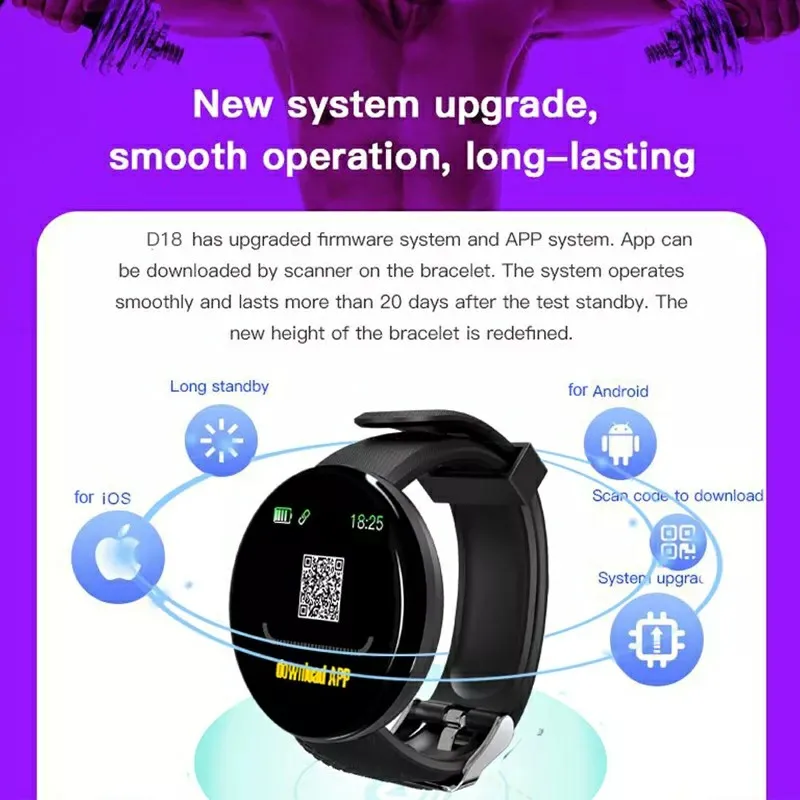 Умные часы D18 с пульсометром, мужские и женские умные часы, круглые цифровые часы для фитнеса, браслет для мужчин и женщин, PK D20 Y68