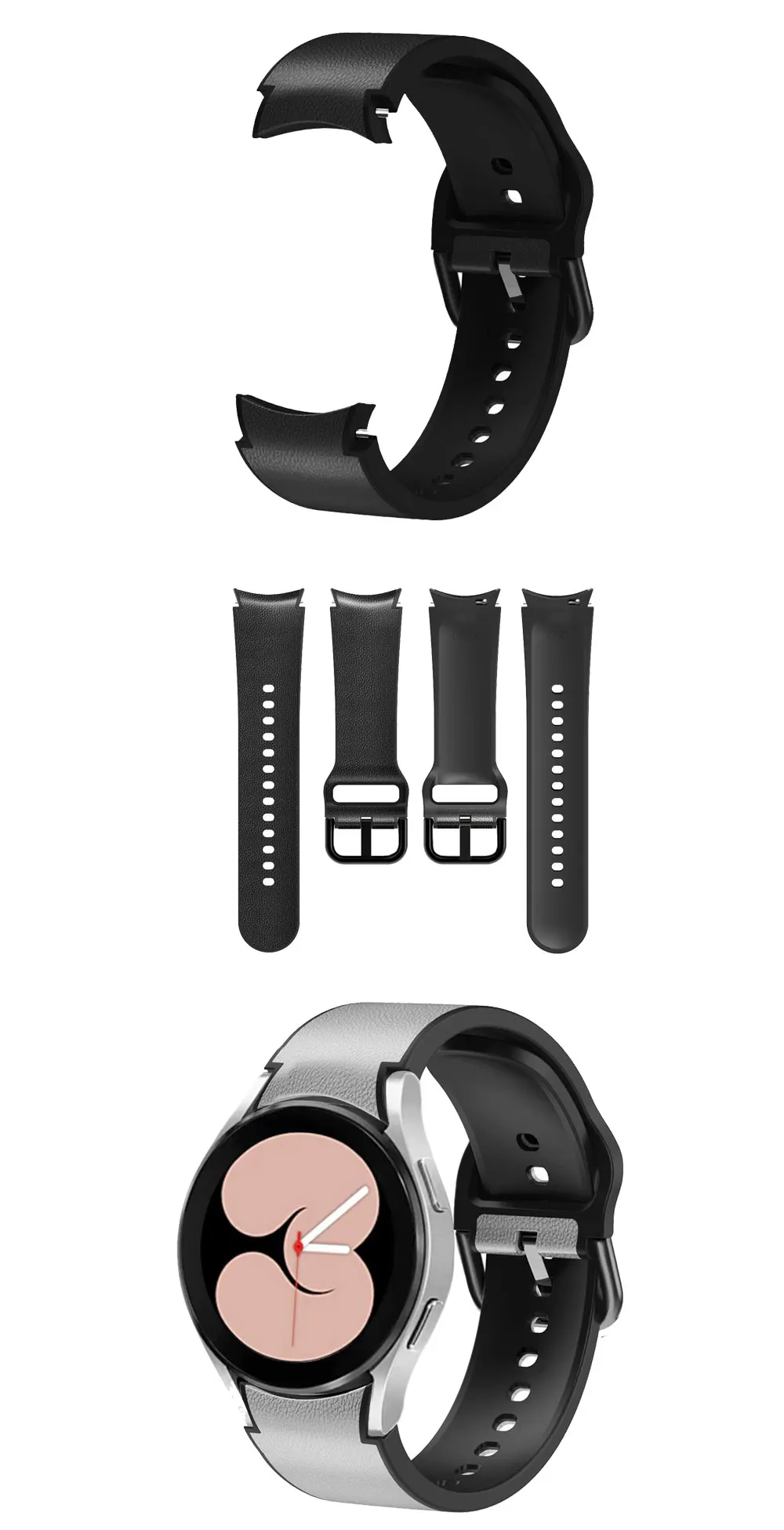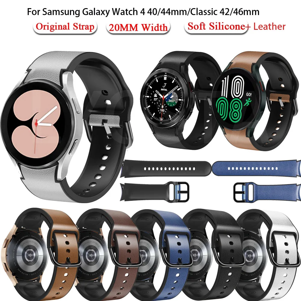 Кожаный + Силиконовый ремешок для Samsung Galaxy Watch 4 40 44 мм ремешок для часов спортивный браслет для Galaxy Watch 4 Классический 46 мм 42 мм