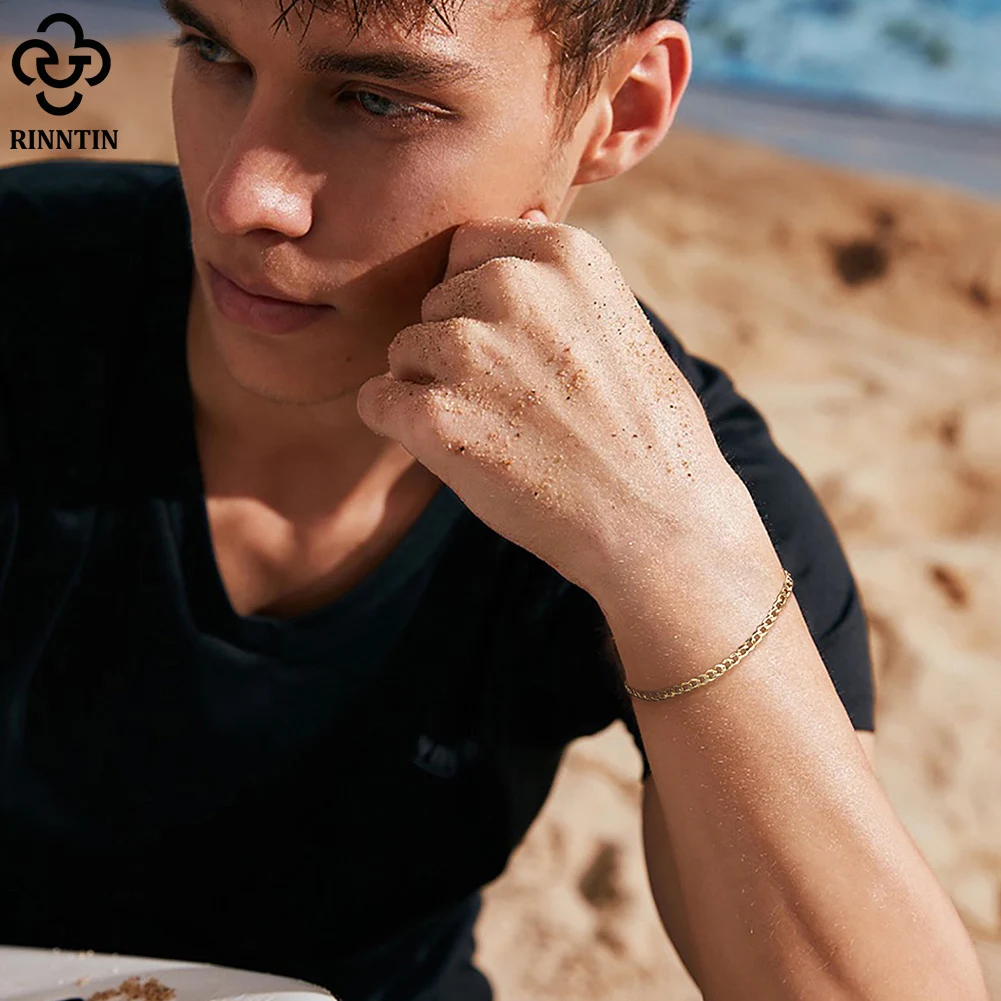 Rinntin, 18 К, золото, Стерлинговое Серебро 925 пробы, 3 мм, итальянская кубинская цепочка, браслет для женщин и мужчин, браслет из стерлингового серебра, ювелирное изделие, SB123