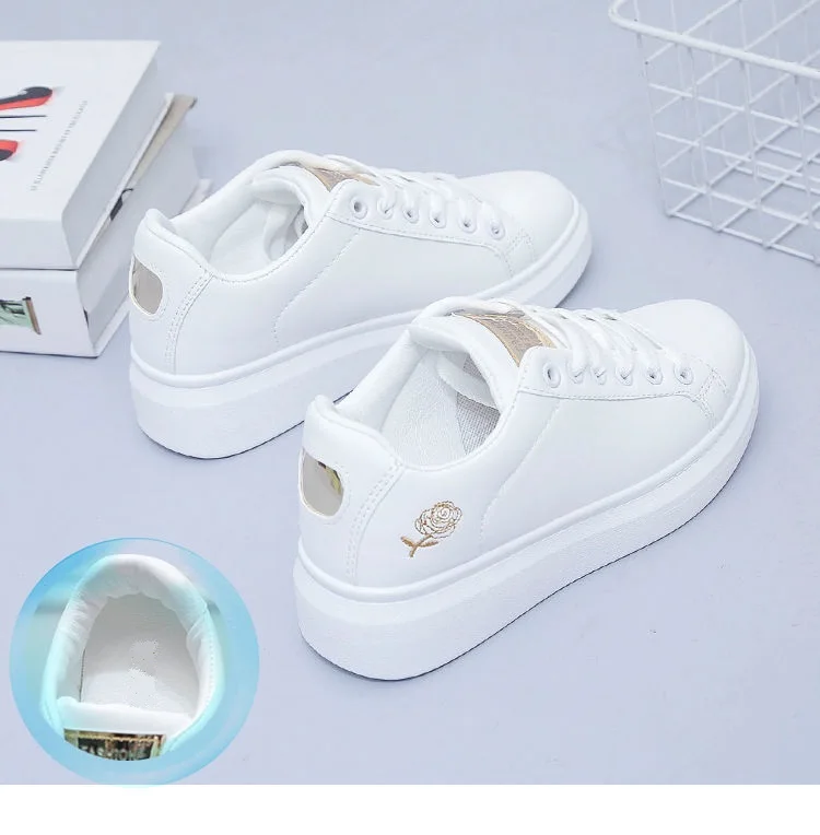 Женские кроссовки на шнуровке, белые дышащие кроссовки с цветочной вышивкой, повседневная обувь на весну 2022