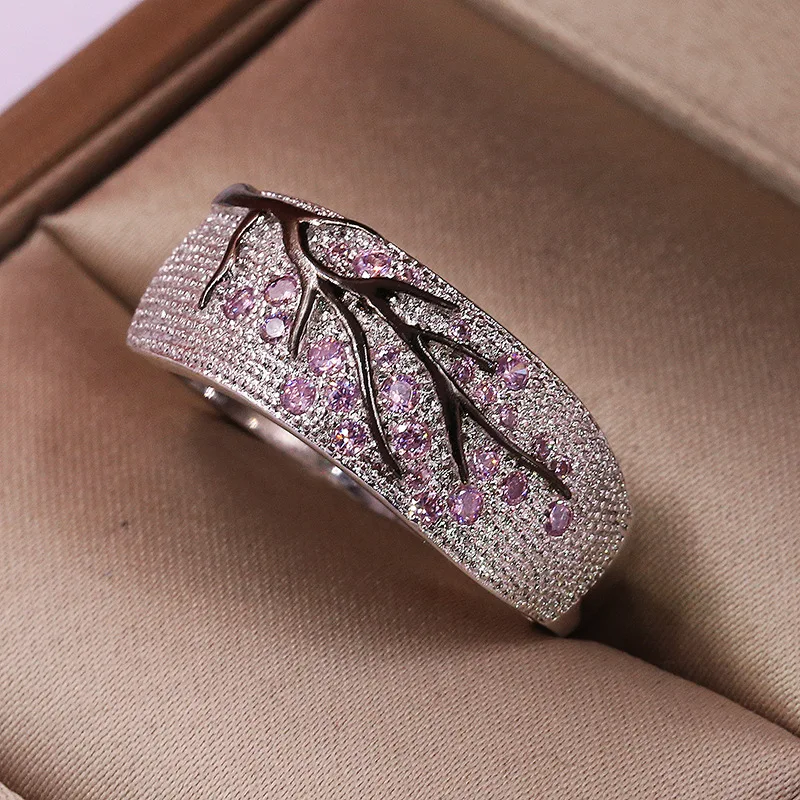 Модное блестящее кольцо ветка из цветного кристалла циркона, кольцо...