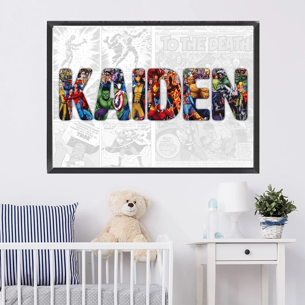 Персонализированный постер с названием Мстителей и надписью MARVEL,...