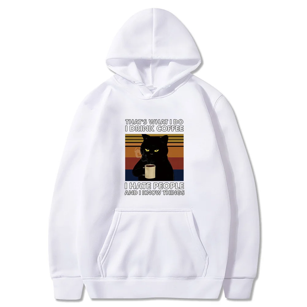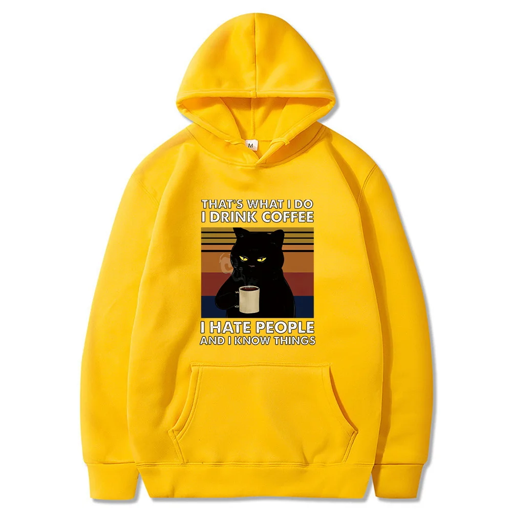 Толстовка с капюшоном для мужчин и женщин, Повседневная модная одежда с принтом черного кота, свободные худи с длинным рукавом, пуловер для пар, топ на осень