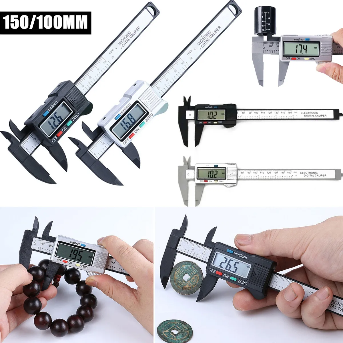 Цифровой штангенциркуль из углеродного волокна с ЖК-дисплеем, 150 мм