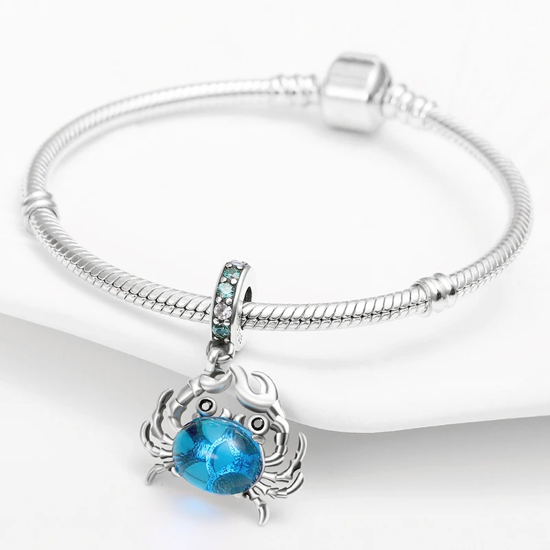 Шармы plata of ley 925 оригинальные подходят для оригинального браслета Pandach горячая Распродажа голубые шармы Бусины Серебряного цвета Подвеска для женщин diy ювелирные изделия
