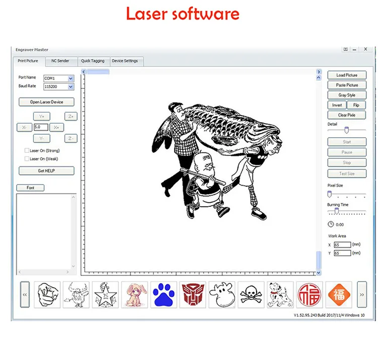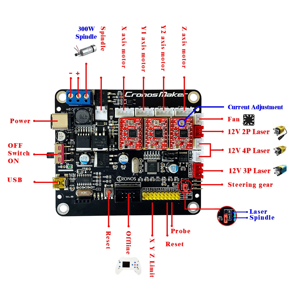 Программное обеспечение управления: GRBL контрольКонструкция: алюминий + пластикРабочая зона: 300*180*40 ммРазмер оправы: 400*330*240 ммШпиндель: 775 мотор шпинделя (12-36 в) 24 В: 7000р/мин, 36 В: 9000р/минШаговый двигатель: 1.3A 0.25N.mИсточник питания: 24 в 5,6 АПоддерживаемая система: Windows XP/ Win 7/ Win 8/ Win10Лазер (на выбор):500 мВт 12V 405nm2500mw/5500mw/15W 12V 450nmДиаметр: 3,175 мм наконечник: 0,1 мм длина: 30 мм