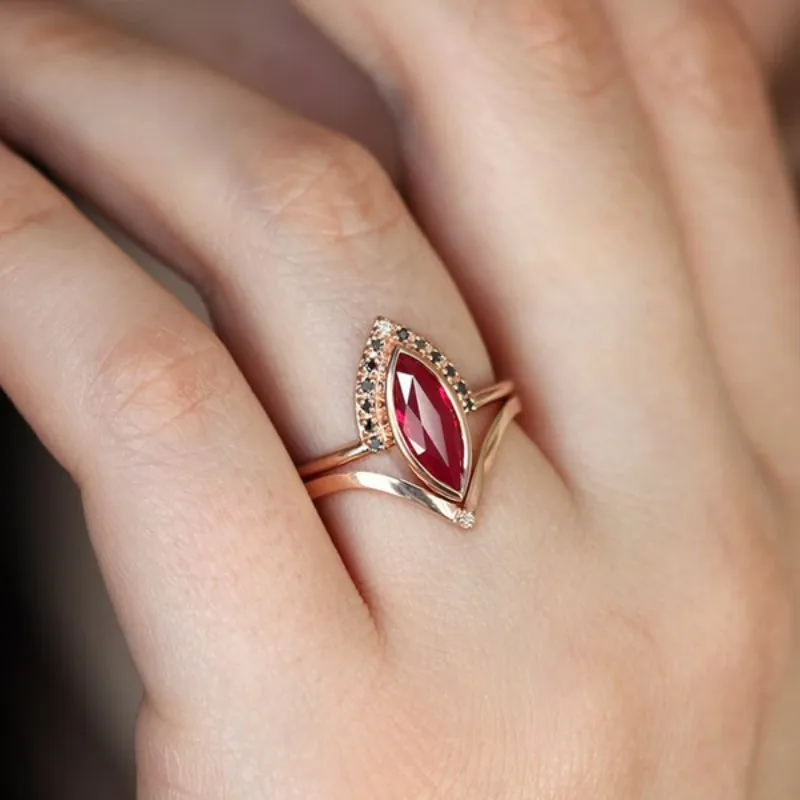 Уникальное красное обручальное кольцо 2 в 1, свадебное кольцо марки...