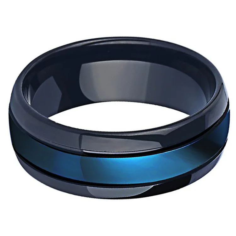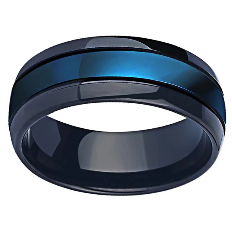Новинка 8 мм черные синие вольфрамовые обручальные кольца с двойным пазом скошенный край кирпич матовые кольца из нержавеющей стали для мужчин женщин мужчин