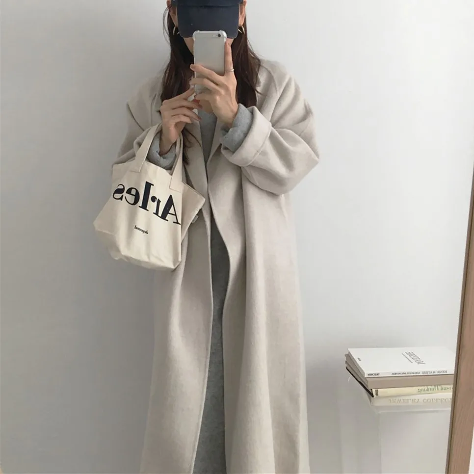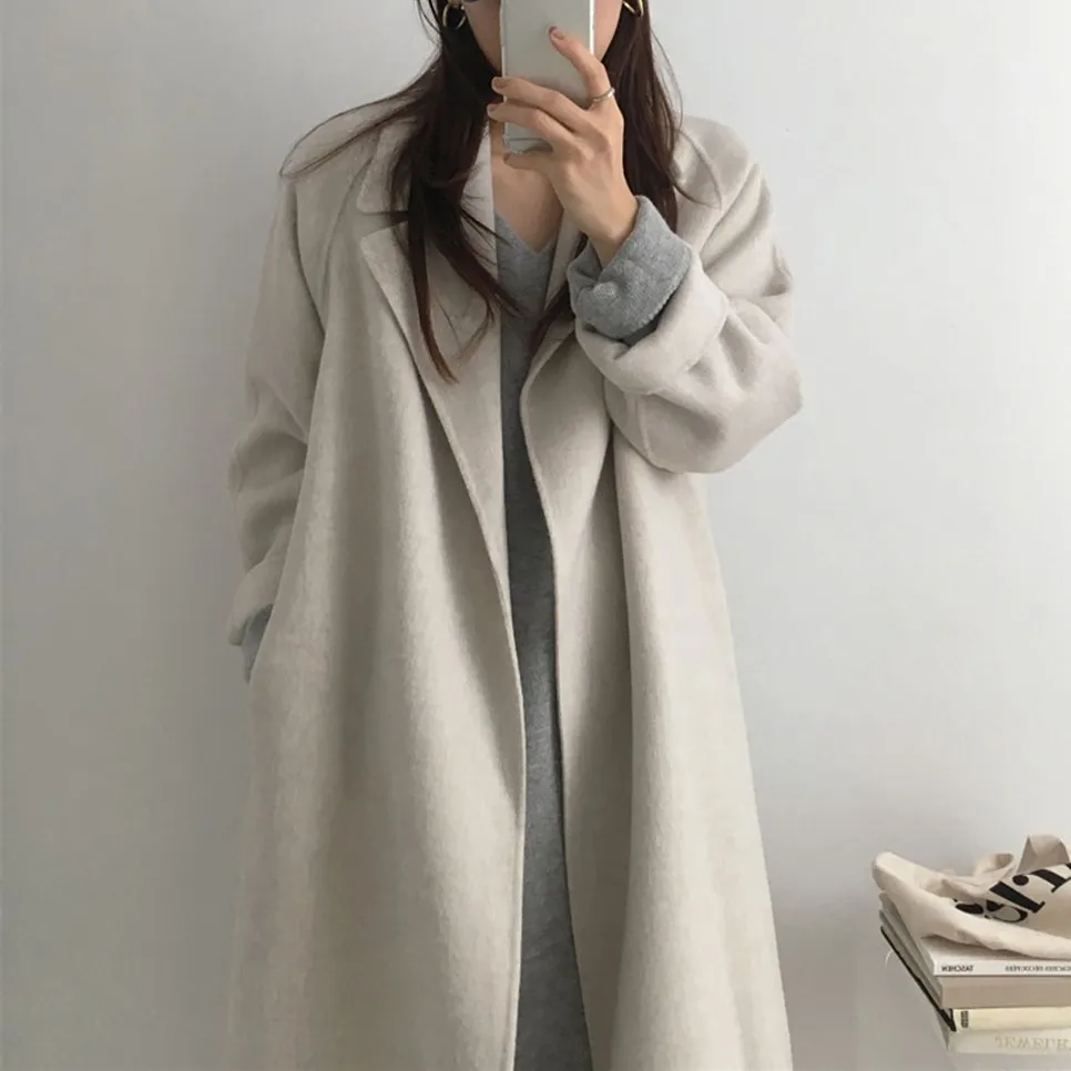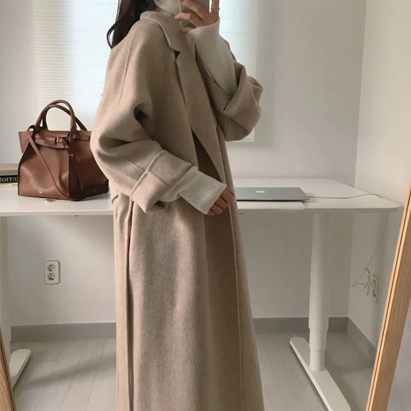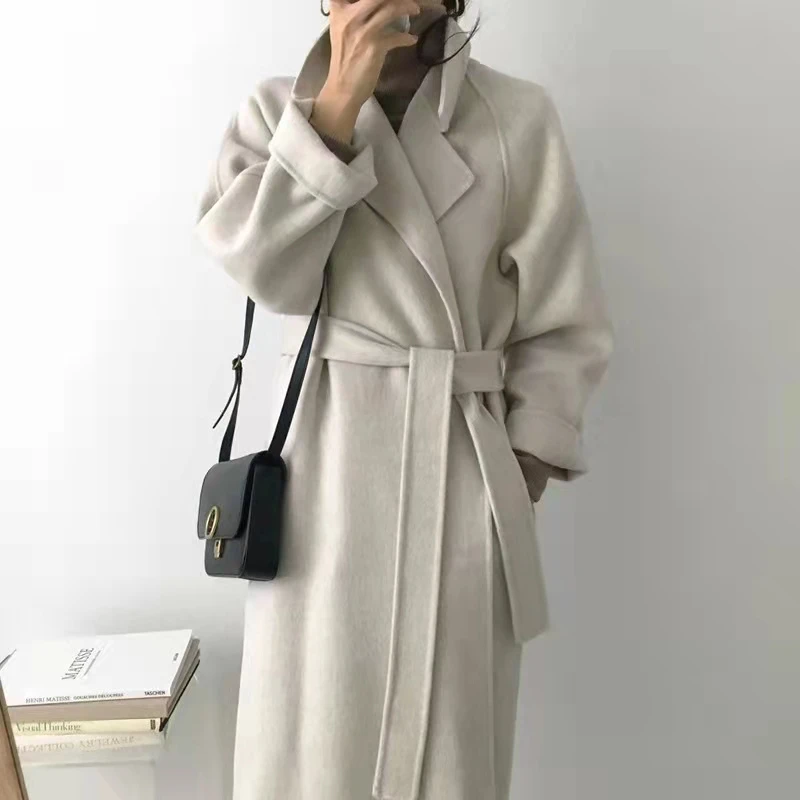 Женское длинное шерстяное пальто с поясом, модная верхняя одежда, универсальная ветровка в стиле ретро, повседневное теплое шерстяное пальто, зимнее пальто оверсайз 2021