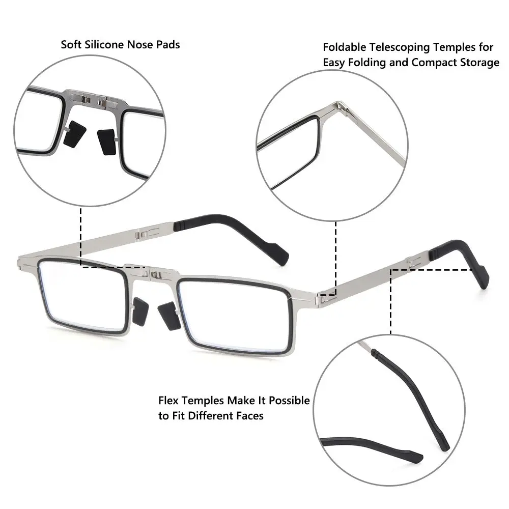 100% новый бренд, высокое качество!Тип: синий светильник для чтенияСтиль: компактный, портативныйЦвет: черный, серебристыйМатериал линз очков: поликарбонатМатериал оправы очков: нержавеющая сталь + силикон + ПоликарбонатОсобенности:* Компактная складная конструкция-Складной мост и телескопические заушники для удобного складывания и компактного хранения.* Блокирующий синий светильник-анти 90% вредных лучей и uv400. Ношение очков, анти-синий светильник защитит ваши глаза от вредного синего светильник, избавит от усталости глаз и дискомфорта, особенно при просмотре телевизора и работе под флуоресцентным светильник s. Пара очков, блокирующих синий светильник, имеет важное значение для тяжелых пользователей компьютера и мобильный телефон.* Высокое качество, практичный дизайн-очки изготовлены из оправы из нержавеющей стали и поликарбонатных линз, а складная конструкция позволяет брать в любое место. Мягкие силиконовые носоупоры и гибкие заушники позволяют идеально подогнать различные лица. Вы будете удовлетворены нашим высоким качеством, если получите их!• Размер изделия-рамка Ширина: 5,2 дюйм (ов), объектив Ширина: 1,6 дюйм (ов), высота линзы: 0,9 дюйм (ов), Длина планки между проемами линз Ширина: 0,2 дюйм (ов), храмов, Длина: 5,4 дюйм (ов).* Портативный чехол для ключей-достаточно маленький, чтобы поместиться практически в любом месте-ваш карман, кошелек и сумка или сумка.Посылка включает в себя:1 х анти-синий светильник очки для чтенияПримечание:1. Есть разница в 2-3% в соответствии с ручными измерениями. Пожалуйста, внимательно проверьте размер перед покупкой товара.2. Пожалуйста, обратите внимание на то, что в светильник разница в цвете, это может быть связано с положением источника светильник и с настройками экрана.