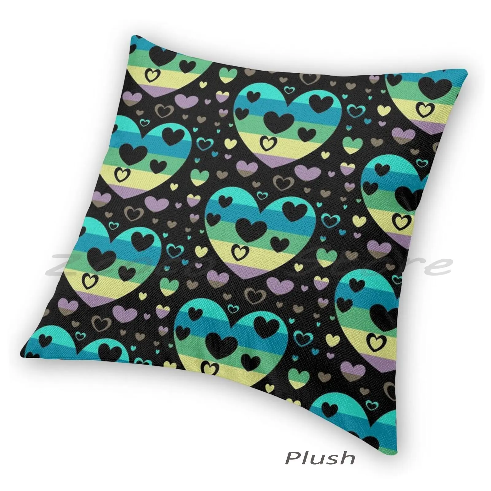 Чехлы-подушки из льняной плюшевой бархатной ткани с рисунком сердец могли бы (на черном фоне)