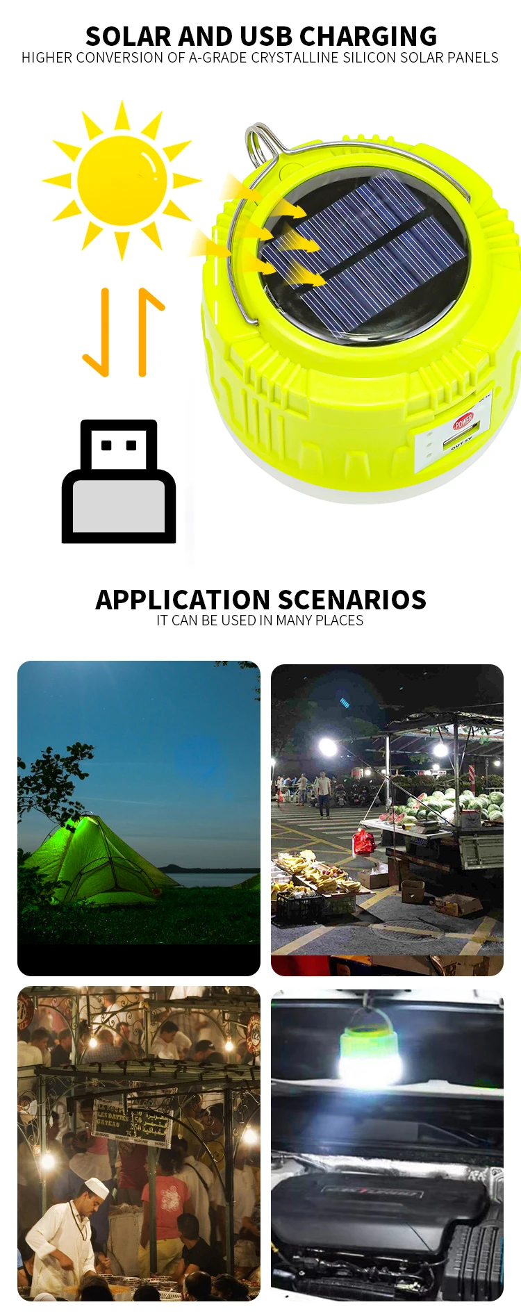 Фонарь для кемпинга на солнечной батарее, аккумулясветильник аварийный светильник для телефона, уличные портативные фонари с USB-светодиодом, наружная лампа