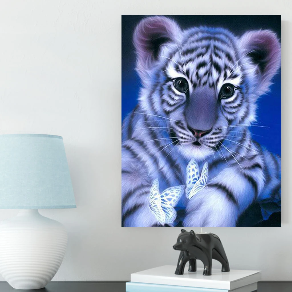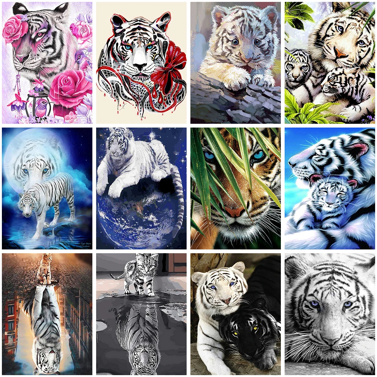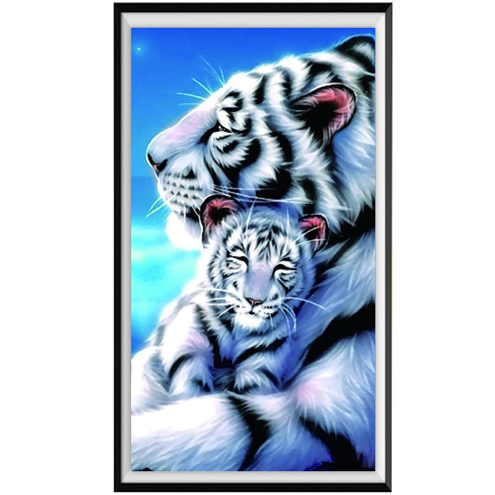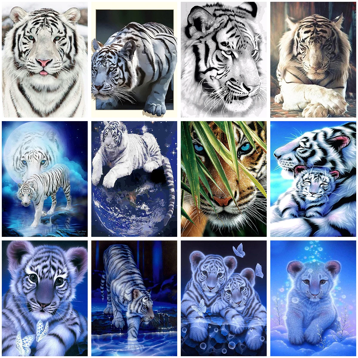 Алмазная живопись сделай сам 5D с белым тигром, алмазная вышивка, искусство, вышивка крестиком, животное, мозаика, картина, украшение для дома, подарок
