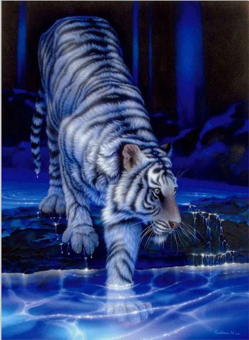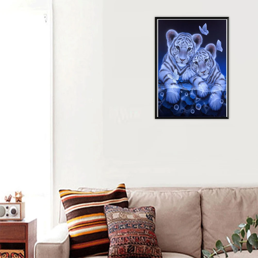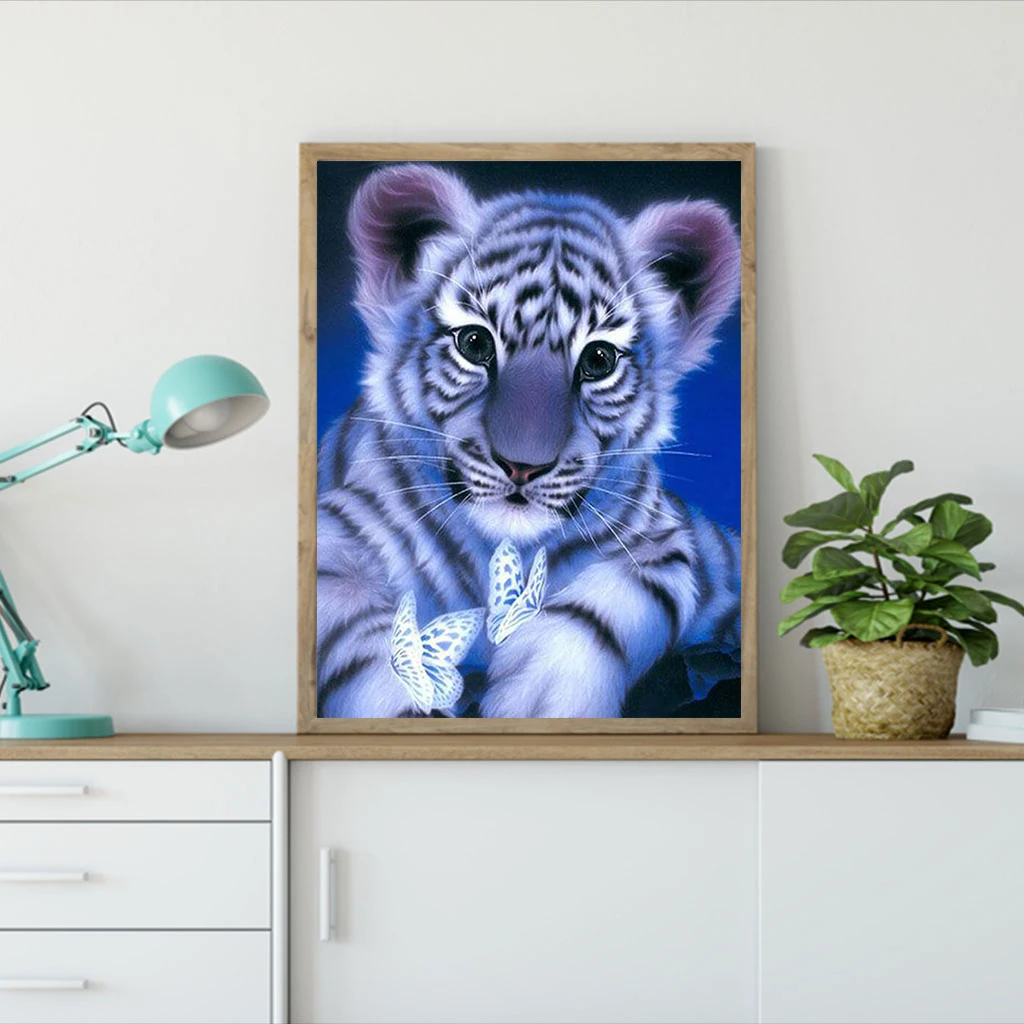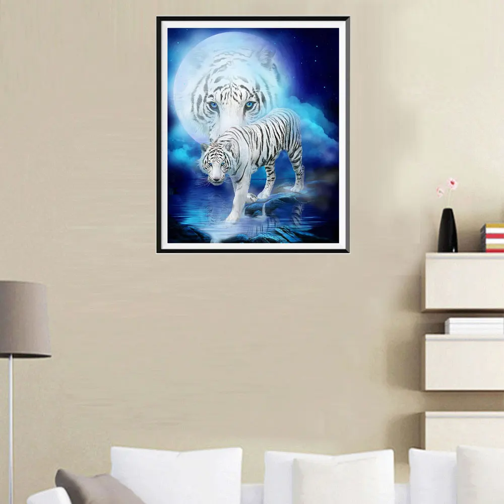 Алмазная живопись сделай сам 5D с белым тигром, алмазная вышивка, искусство, вышивка крестиком, животное, мозаика, картина, украшение для дома, подарок