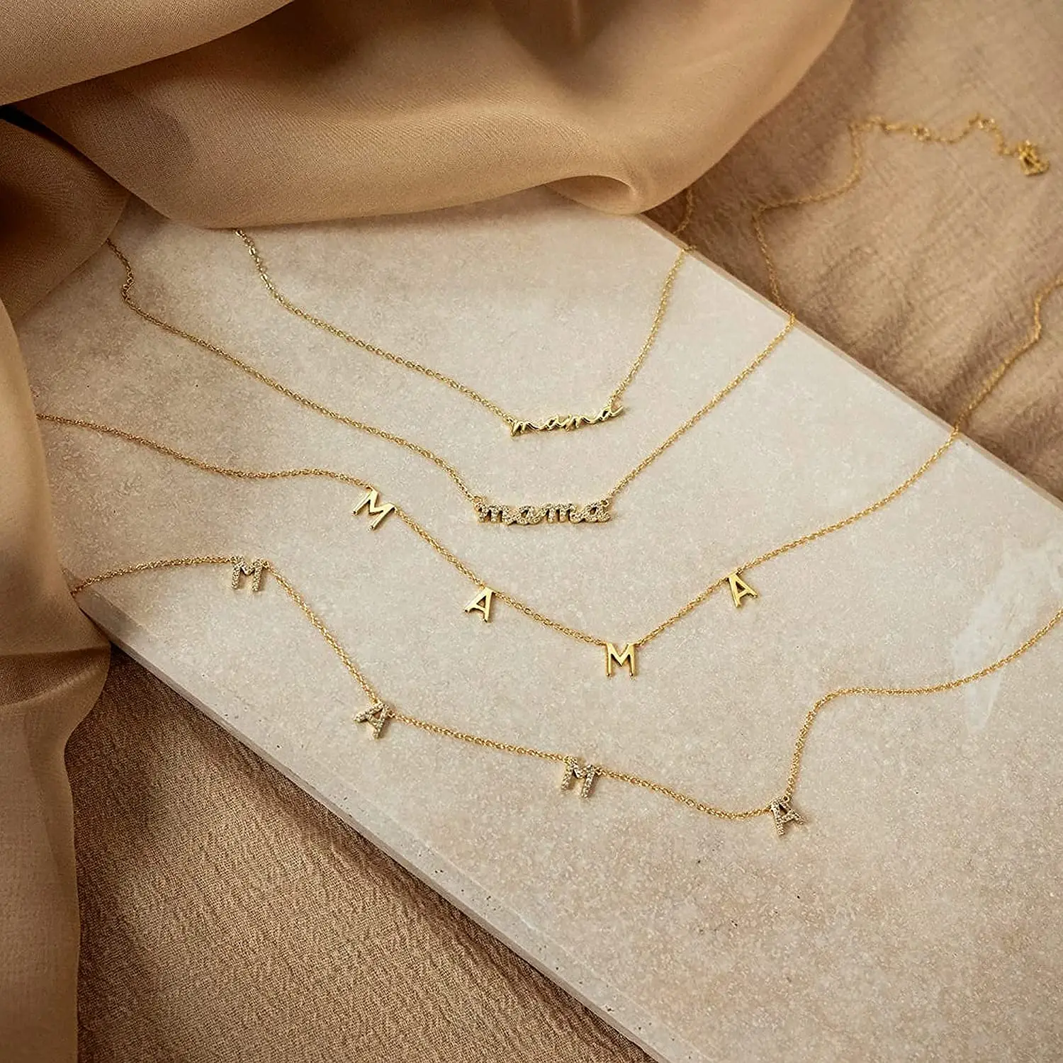 Минимализм Мама Ожерелья с буквой для женщин именная табличка ювели...