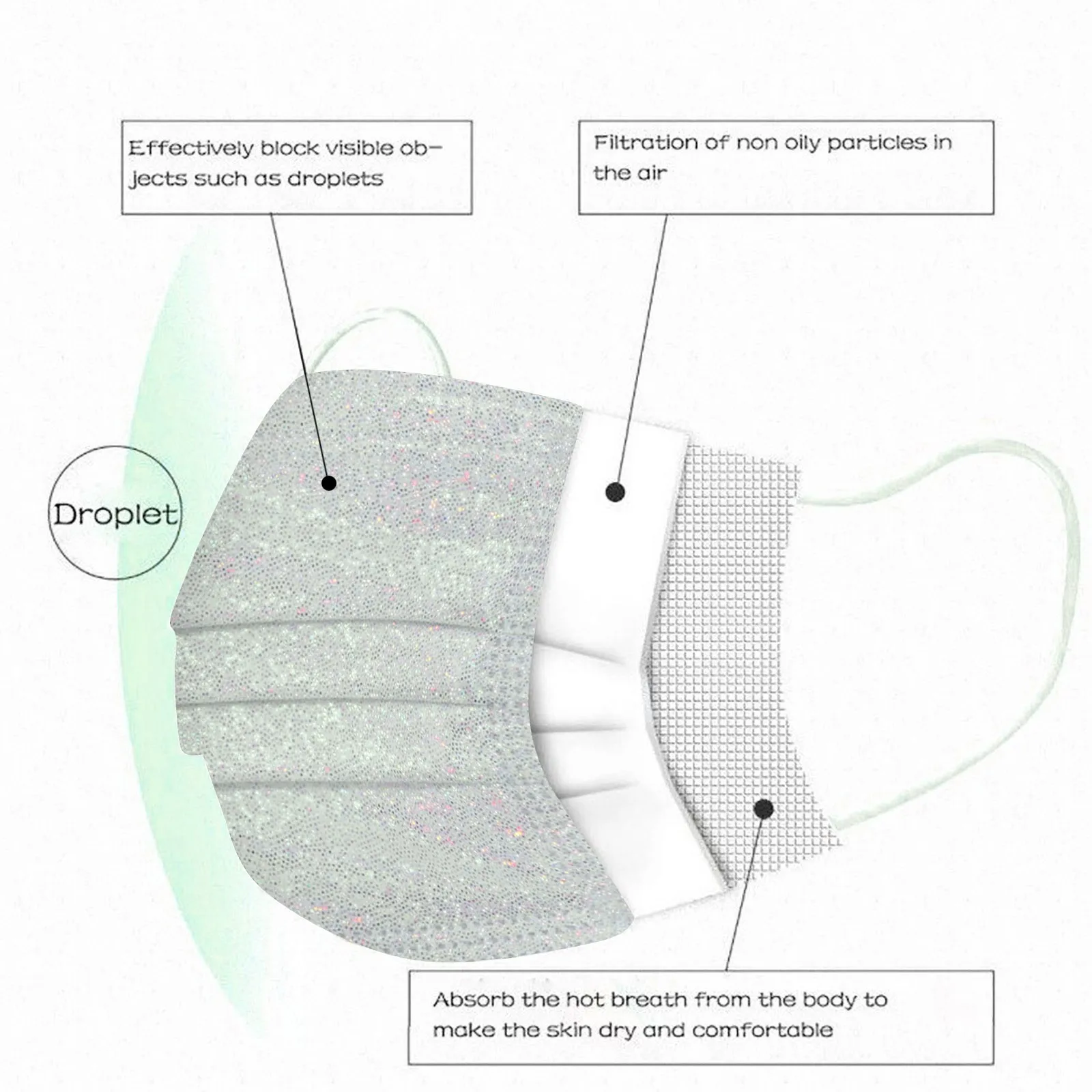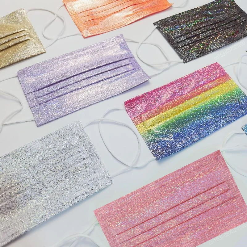 Блестящая Лазерная маска Одноразовые 3-слойные маски Модные маски для лица нетканые расплавленные маски для взрослых